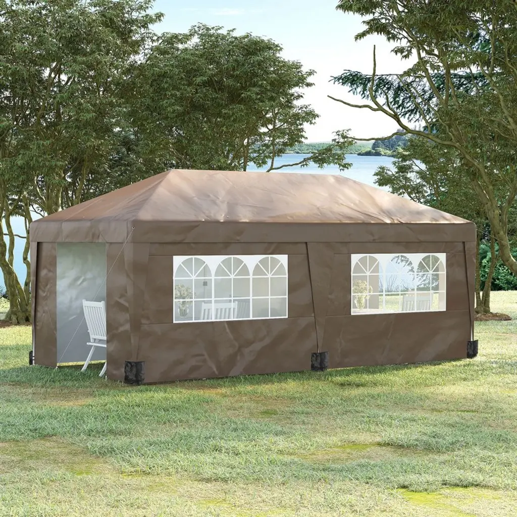 Outsunny 10' X 19.5' Large Party Tent, Height Adjustable Pop Up Canopy With Weight Bags And Wheeled Carry Bag, Brown