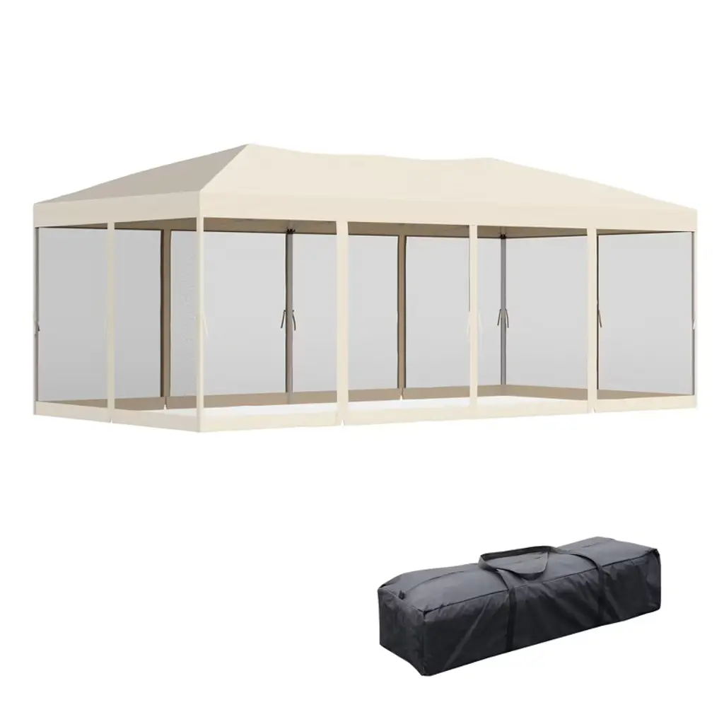 Outsunny 10' X 20' Pop Up Canopy With 6 Sidewall Mesh Netting, Outdoor Party Event Tent With Oxford Fabric Roof For Backyard Garden Patio, Beige