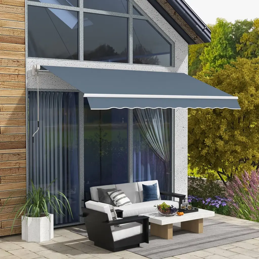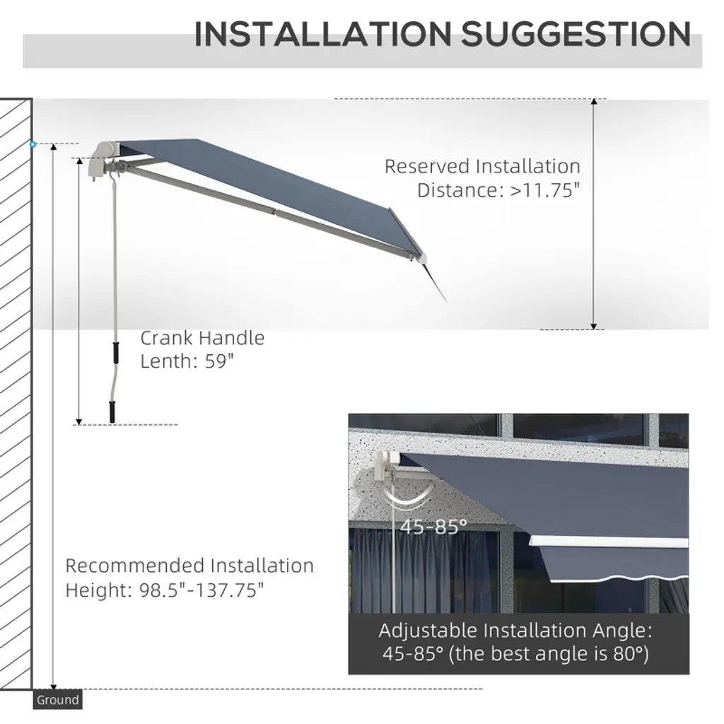 With its sturdy aluminum and solid steel frame, the Outsunny retractable awnings for patio are ideal for creating shade. The reinforced frame and polyester fabrics make the porch awning superior in material and excellent in artistry. It can be easily mounted on the wall with the included accessories. Our patio awnings will create a friendly and relaxed place on your porch or patio and protect you from harmful UV rays. Enjoy both beauty and protection with this Outsunny door awning.