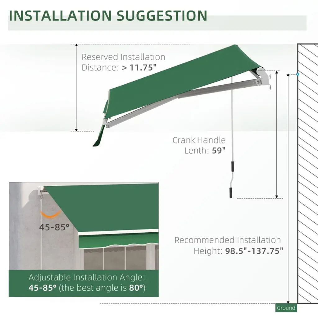 With its sturdy aluminum and solid steel frame, the Outsunny retractable awnings for patio are ideal for creating shade. The reinforced frame and polyester fabrics make the porch awning superior in material and excellent in artistry. It can be easily mounted on the wall with the included accessories. Our patio awnings will create a friendly and relaxed place on your porch or patio and protect you from harmful UV rays. Enjoy both beauty and protection with this Outsunny door awning.