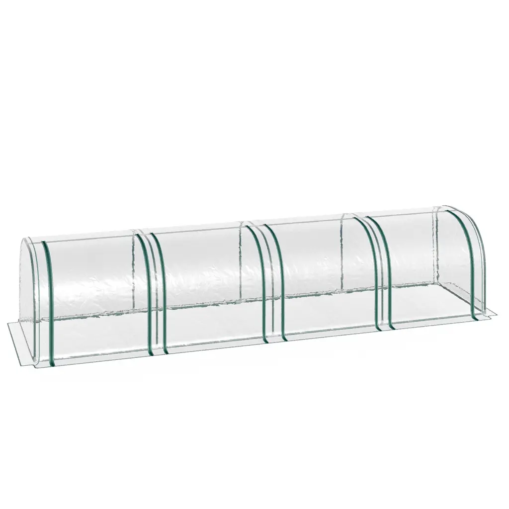 This tunneled greenhouse from Outsunny is constructed using a solid steel pipe frame and durable PVC plastic cover. It's perfect for seeding or just to protect your young plants from the outside elements, shielding plants from dust and wind and keeping out pests so that they thrive inside the proper temperature. The lightweight design is portable yet sturdy for long lasting outdoor use. Double zippered roll-up side doors offer easy access and good ventilation. Simple assembly is required.
