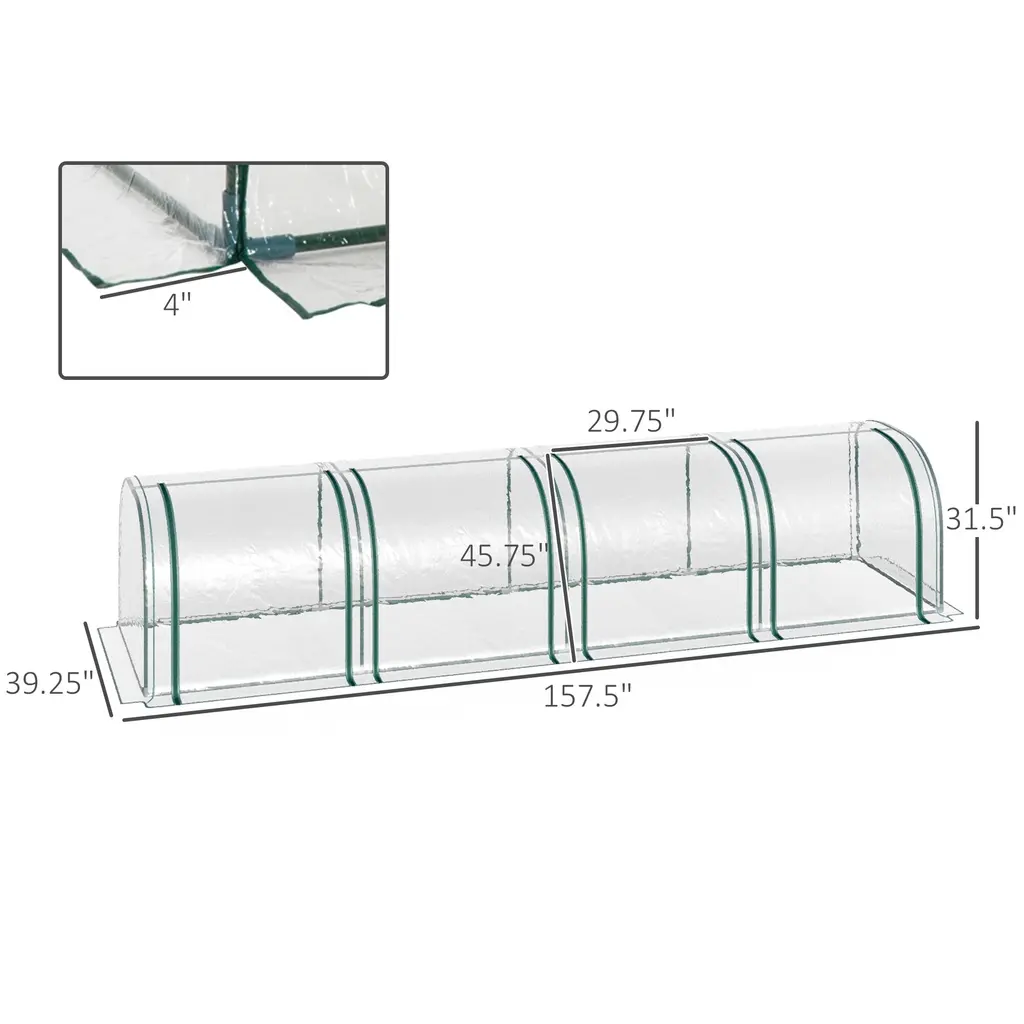 Outsunny 13' L X 3.25' W X 2.5' H Pvc Metal Tunnel Garden Greenhouse Kit With Air Ventilation & A Solid Durable Design - Green - Hobby - Plastic