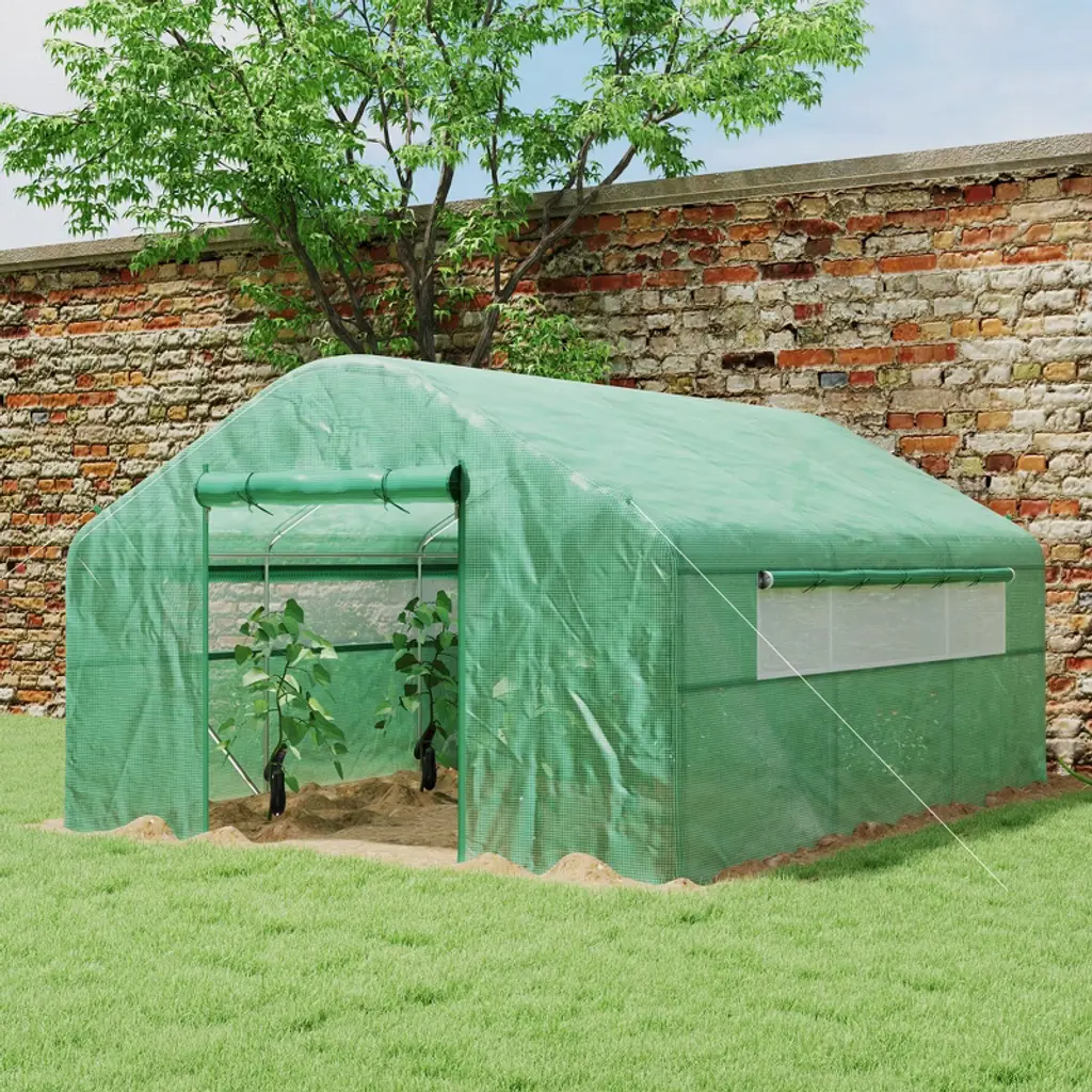 Discover the joys of year-round gardening in the spacious interior of the Outsunny Polytunnel Greenhouse. This walk-in greenhouse ensures your plants thrive in any weather, featuring a convenient roll-up door and large mesh windows for optimal ventilation. The robust 140 gsm PE cover bathes your greens in 85% sunlight while guarding against sun scorching. Great for every green thumb looking for a spacious garden tunnel to cultivate their garden polytunnel paradise.