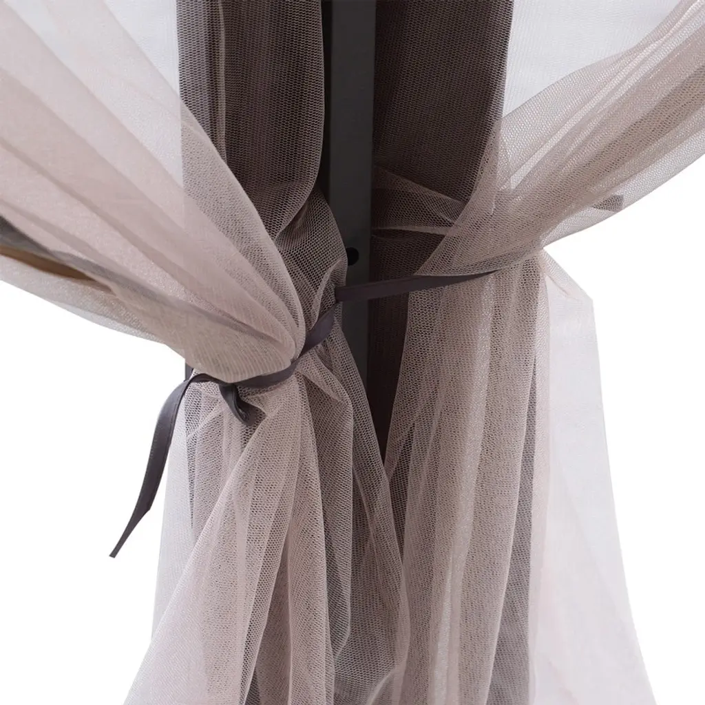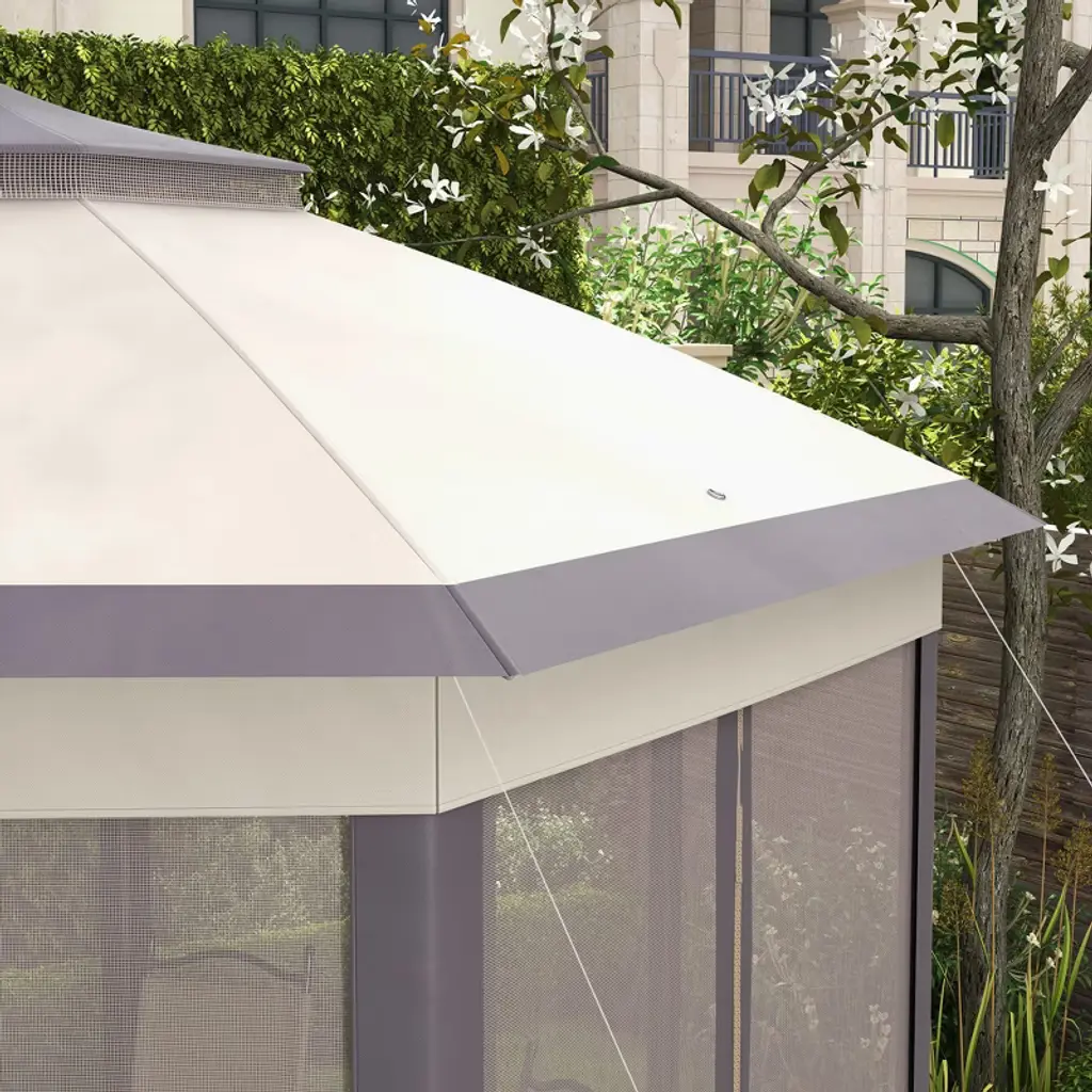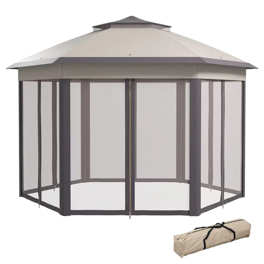 Outsunny 13' X 13' Pop Up Gazebo Hexagonal Canopy With 6 Zippered Mesh Netting, 2-tier Roof Event Tent With Steel Frame For Patio Backyard, Coffee