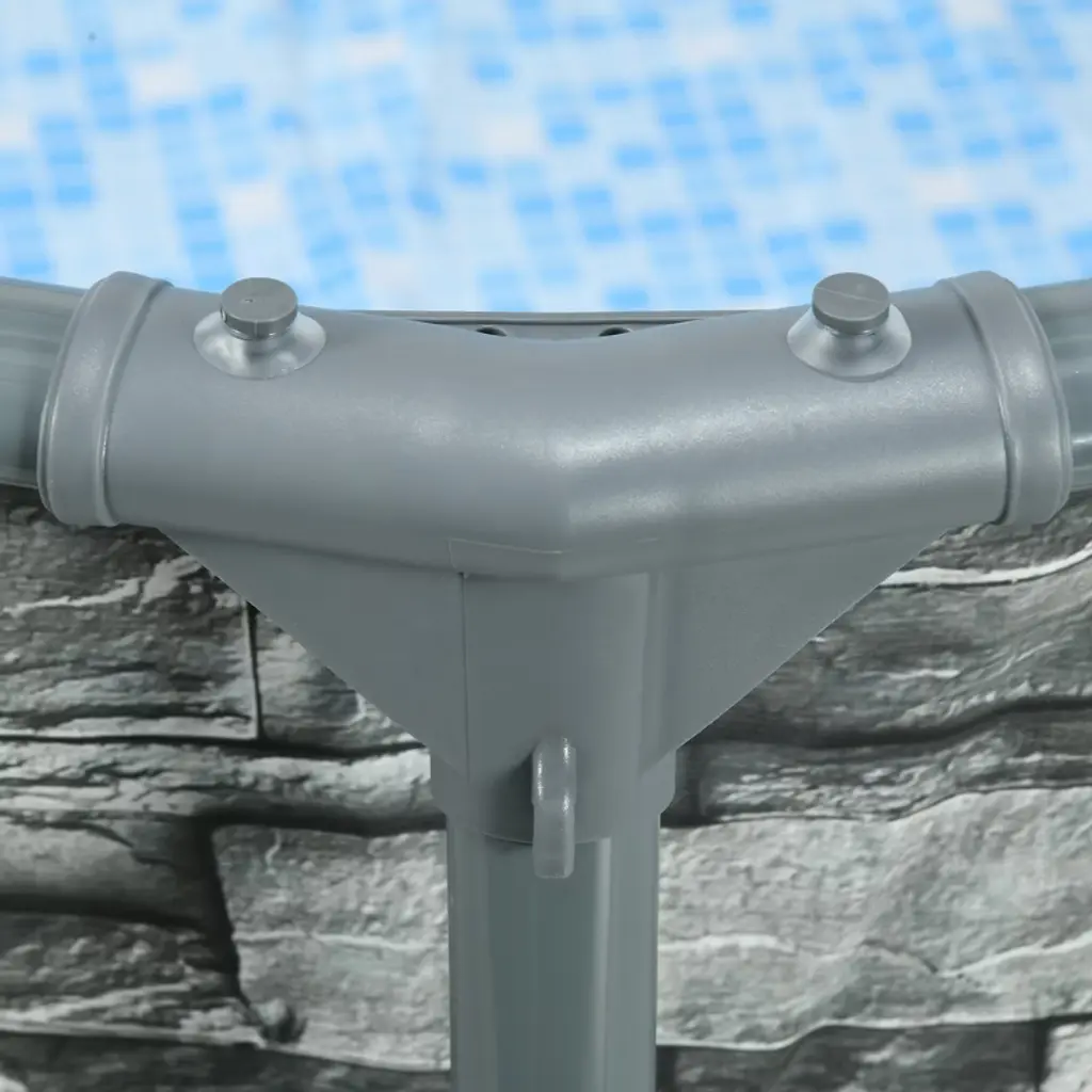 Make a splash this summer with an Outsunny above-ground pool. Call up some friends; this large, 14' pool can hold up to 8 adults. A classic blue tile pattern on the inside brings the look of an in-ground without the wait. This is a self-cleaning pool featuring a filter pump to keep the water crystal clear and free from debris. With two transparent windows on the sides, you can see out from underwater and say hello. Have your own backyard Oasis with an Outsunny above-ground pool.