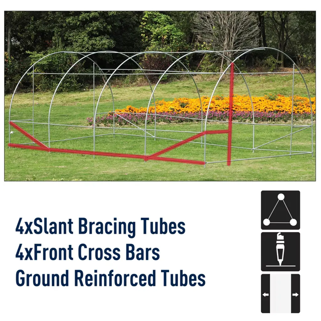 Are you a home gardening enthusiast looking for a way to stay in the soil year-round? This Outsunny portable high tunnel greenhouse offers the vital protection your plants crave without the need to spend exorbitant amounts of money. The plastic mesh cover keeps your crops at the perfect temperature and is reinforced the zippered door for easy access. The perfect gardener's perfect solution is to keep their plants healthy throughout the entire year, made easy with this large greenhouse.