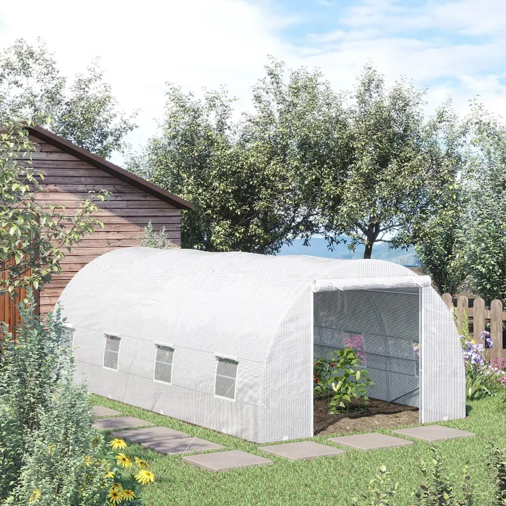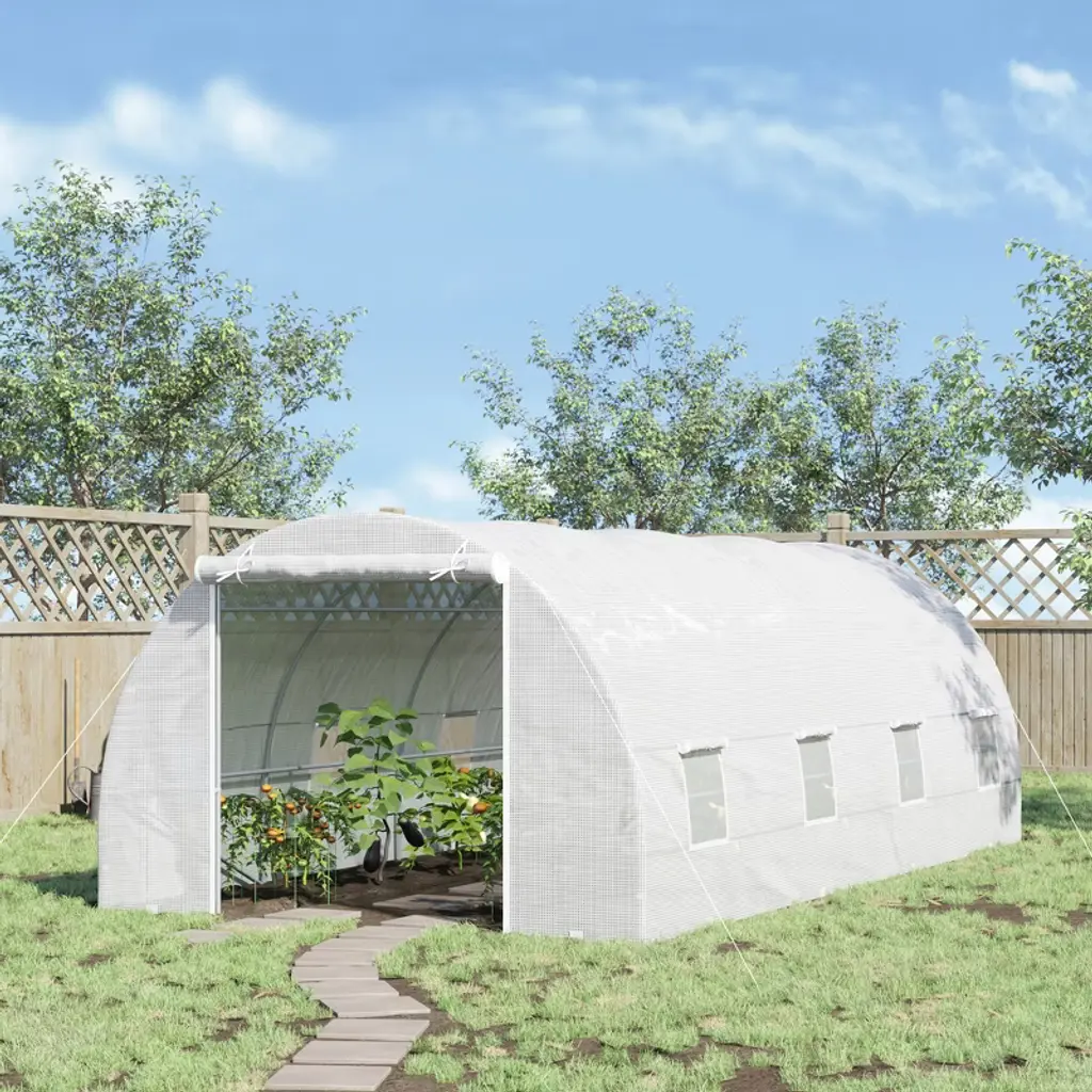 Outsunny 20' X 10' X 7' Walk-in Tunnel Greenhouse Garden Warm House Large Hot House Kit With 8 Roll-up Windows & Roll Up Door, Steel Frame, White