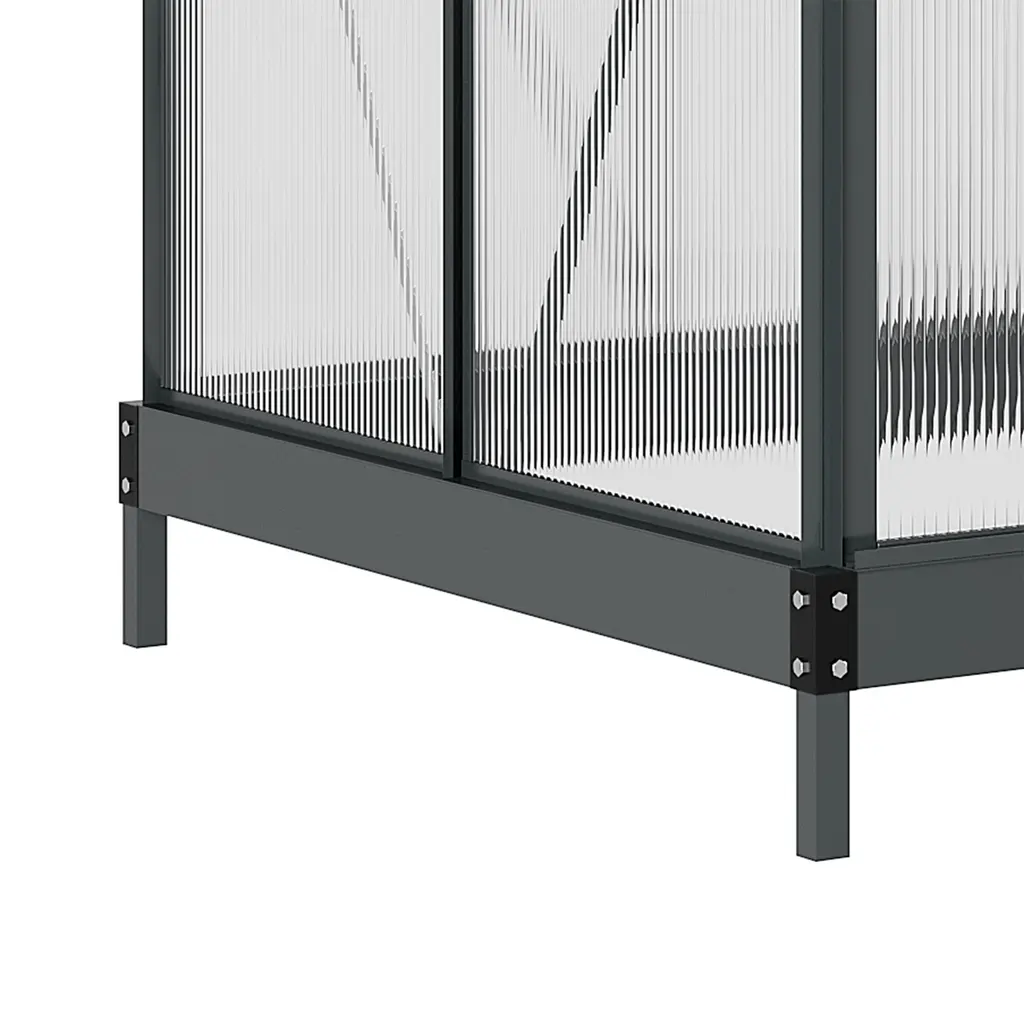 Looking to keep your shovel outside and in the soil year-round? Go with the greenhouse. Outsunny offers a winter greenhouse you can place outside on your patio or backyard. The garden just got an upgrade. Nurse new seedlings or go tropical. Control heat and humidity in a solid polycarbonate shed. Slide the door to walk in with equipment easily. Open the vent, and the climate is under your control. Rain, cold, wind, UV, and wild animals are worries of the past.Features:Specifications:
