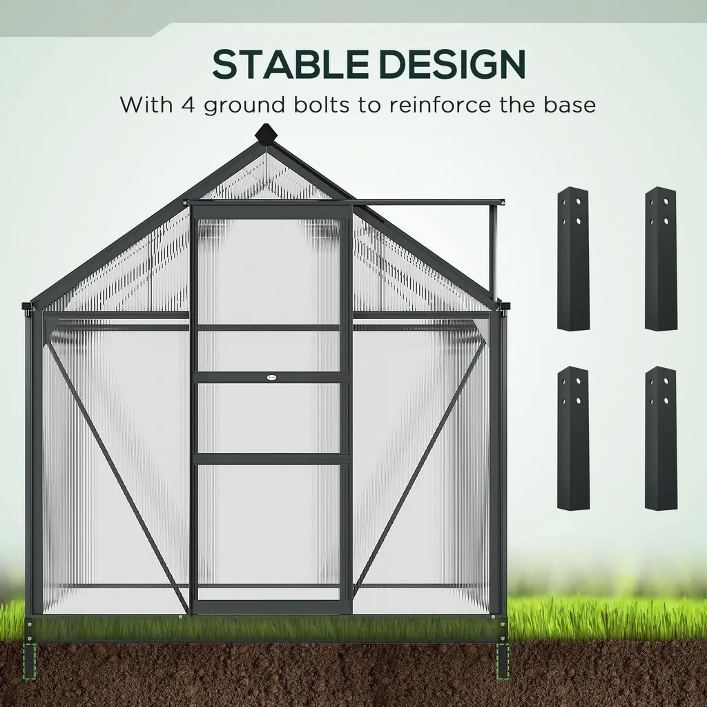 Outsunny 6' X 4' X 7' Twin Wall Polycarbonate Walk-In Greenhouse For Outdoors - 6' X 4' X 6.5' - Hobby