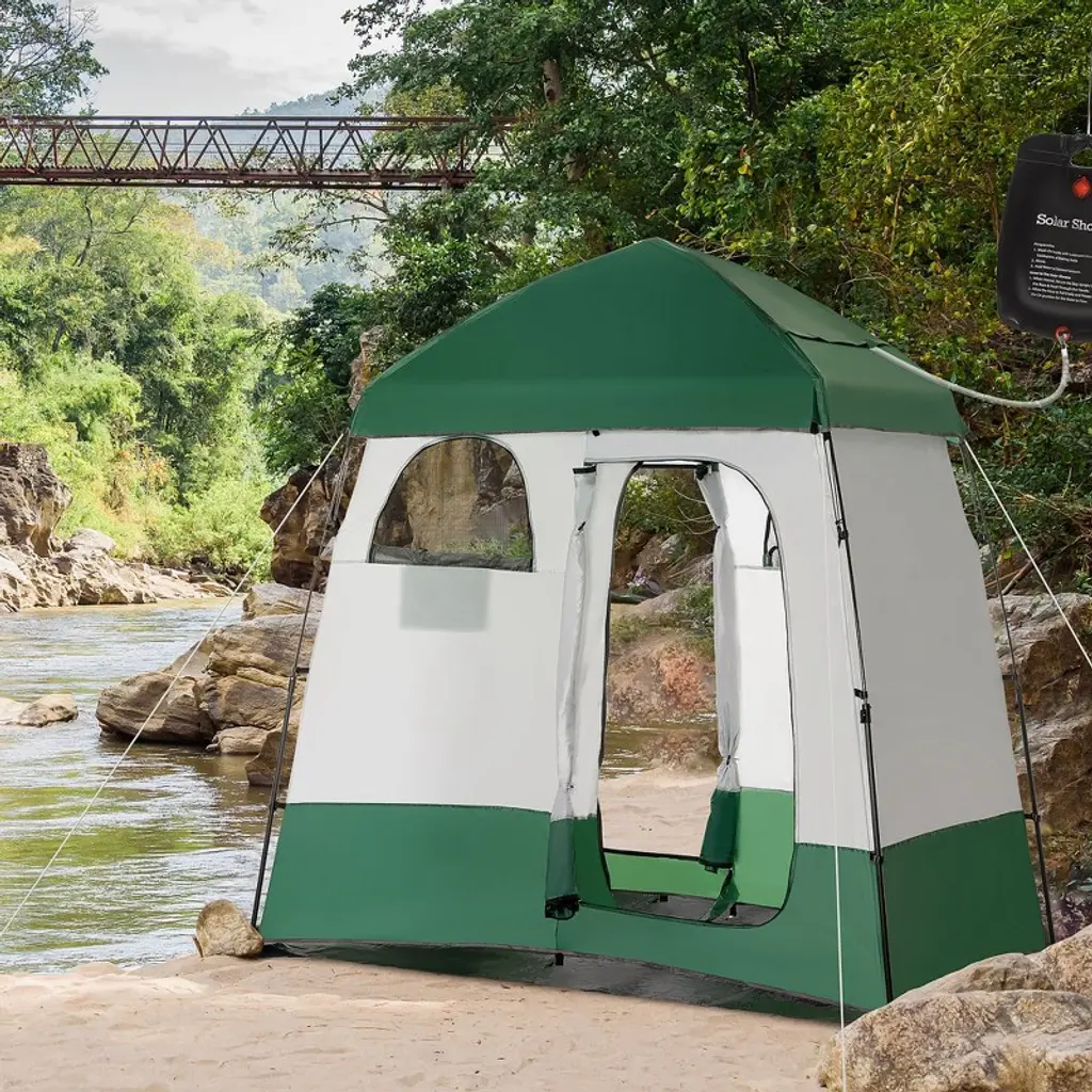 Outsunny Shower Tent, Pop Up Privacy Shelter For Camping, Dressing Changing Room W/ 2 Rooms, Shower Bag, Floor And Carrying Bag, Green