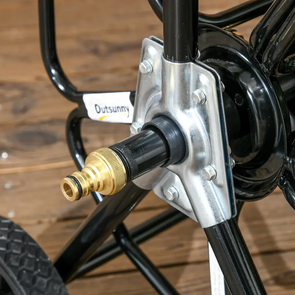 Outsunny Water Hose Reel Cart With Wheels Hold Up To 98' Of 5/8" Hose, Black