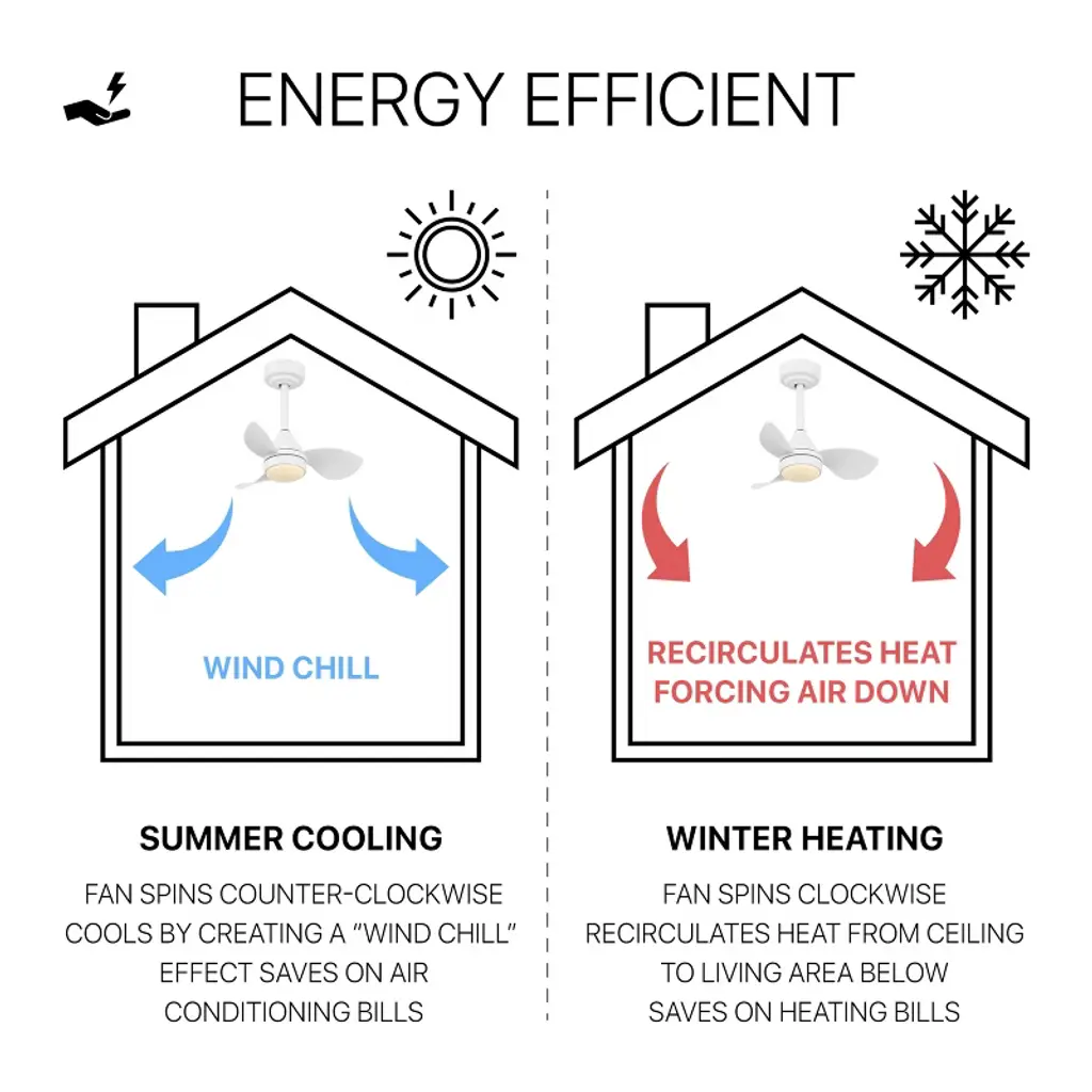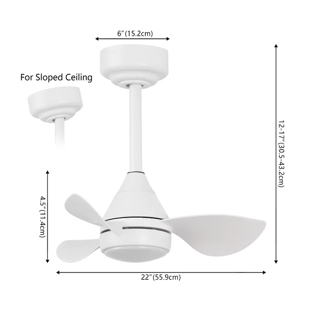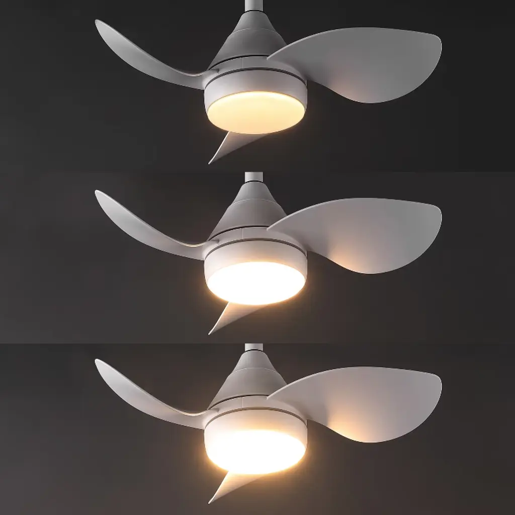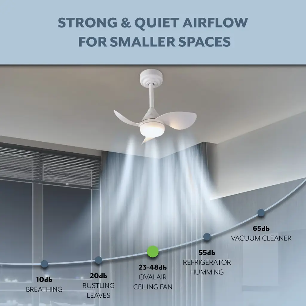 This small minimalist ceiling fan features three sculptural blades for a contemporary look. Controlled by the included remote control, Ovalair mobile-phone app, or a wall switch, this modern design features energy-saving integrated LED bulbs that last for years. Six fan speed settings and 3 color changing options ensure year-round comfort in the living room, bedroom or office.