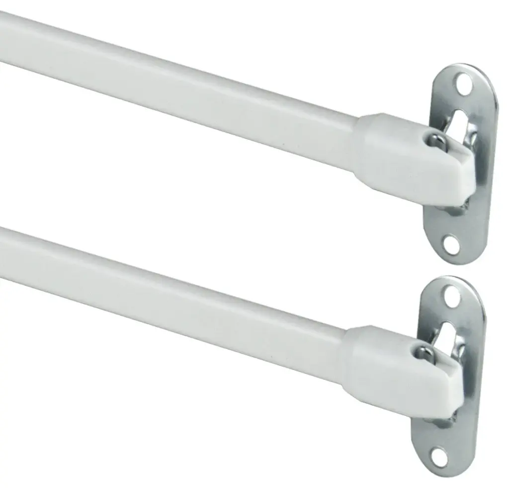 Central Design Products presents the perfect enhancement to your window or door treatment with high end quality Sash Rods. Effortlessly affix to any door or window for a tight fitting style. Designed to add a modern touch. Includes 2 sash rods, 4 end brackets, and mounting hardware. Length: 16-28" Clearance: .4" Rod Measurement: 10mm x 8mm Material: Steel Color: White