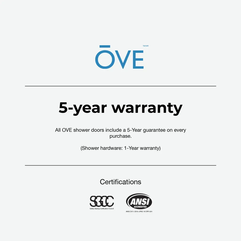The Ove Decors Pasadena frameless pivot shower door offers the kind of simple, stylish versatility that complements any and all bathroom styles. It has a full-length door-to-wall pivot door mechanism, with premium quality hardware, and includes a 25 in. wide door panel and 6 in. wide inline panel, ideal for an alcove installation. All glass door panels are made from premium 8mm (5/16") thick glass and feature high quality magnetic door strips and engineered hardware that ensure smooth opening and closing and no leaks.Ove Decors 15SGP-PASA35 Features:Ove Decors 15SGP-PASA35 Specifications: