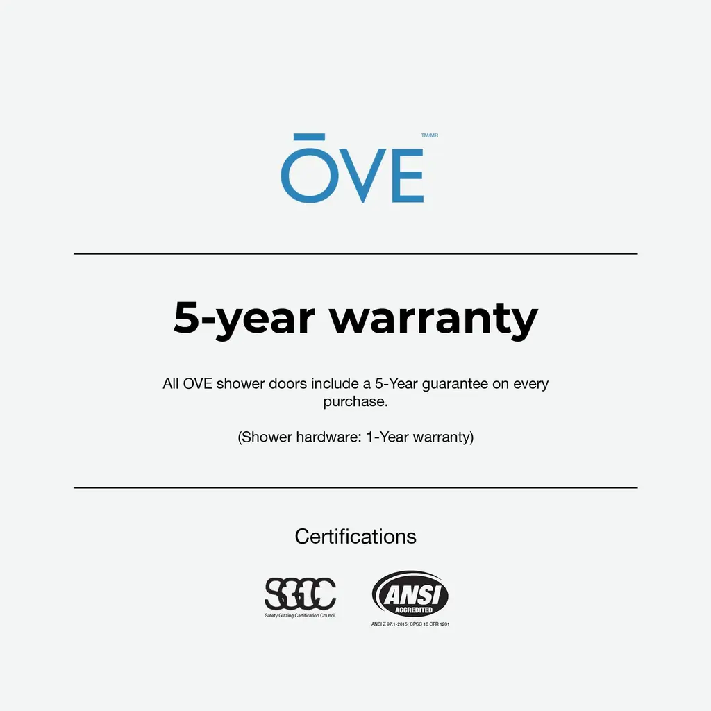 The Ove Decors Pasadena frameless pivot shower door offers the kind of simple, stylish versatility that complements any and all bathroom styles. It has a full-length door-to-wall pivot door mechanism, with premium quality hardware, and includes a 29 in. wide door panel and 8 in. wide inline panel, ideal for an alcove installation. All glass door panels are made from premium 8mm (5/16") thick glass and feature high quality magnetic door strips and engineered hardware that ensure smooth opening and closing and no leaks.Ove Decors 15SGP-PASA41 Features:Ove Decors 15SGP-PASA41 Specifications: