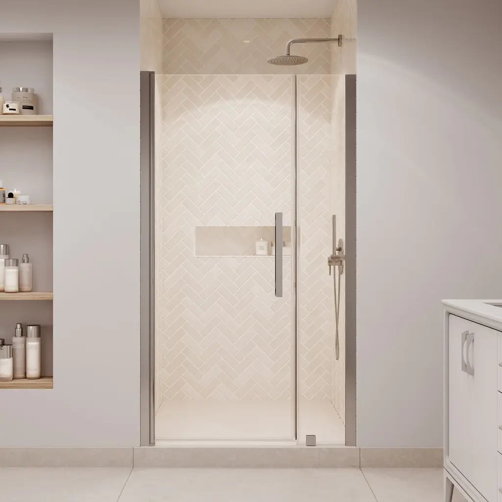 The Ove Decors Pasadena frameless pivot shower door offers the kind of simple, stylish versatility that complements any and all bathroom styles. It has a full-length door-to-wall pivot door mechanism, with premium quality hardware, and includes a 29 in. wide door panel and 10 in. wide inline panel, ideal for an alcove installation. All glass door panels are made from premium 8mm (5/16") thick glass and feature high quality magnetic door strips and engineered hardware that ensure smooth opening and closing and no leaks.Ove Decors 15SGP-PASA43 Features:Ove Decors 15SGP-PASA43 Specifications: