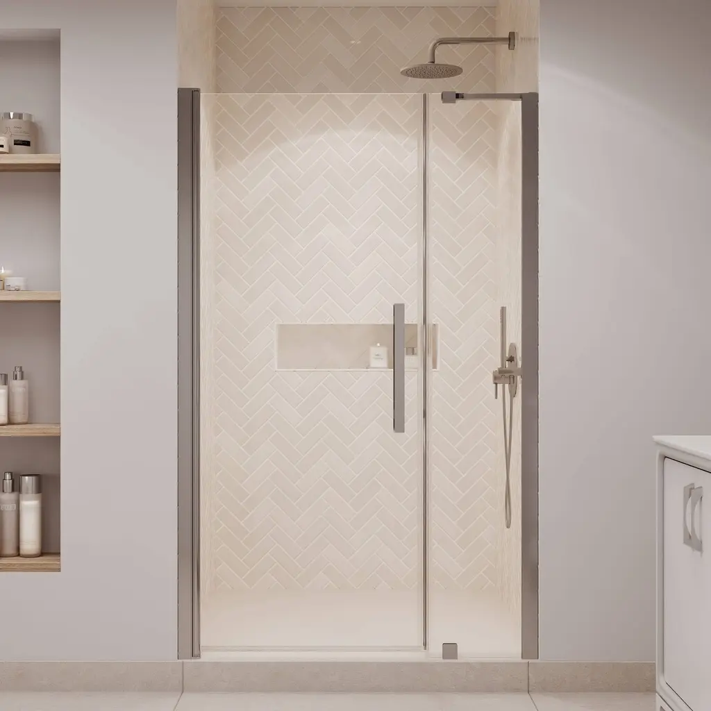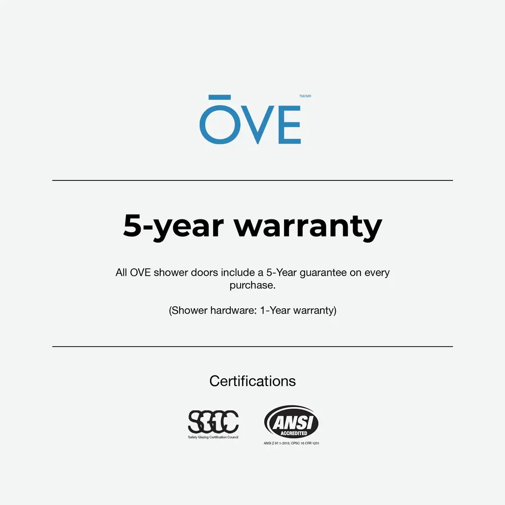 The Ove Decors Pasadena frameless pivot shower door offers the kind of simple, stylish versatility that complements any and all bathroom styles. It has a full-length door-to-wall pivot door mechanism, with premium quality hardware, and includes a 29 in. wide door panel and 14 in. wide inline panel, ideal for an alcove installation. All glass door panels are made from premium 8mm (5/16") thick glass and feature high quality magnetic door strips and engineered hardware that ensure smooth opening and closing and no leaks.Ove Decors 15SGP-PASA47 Features:Ove Decors 15SGP-PASA47 Specifications: