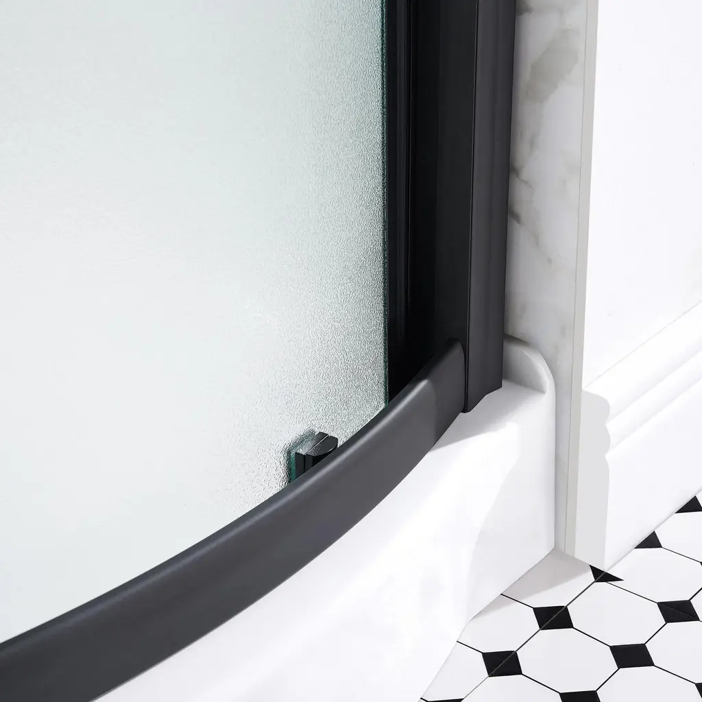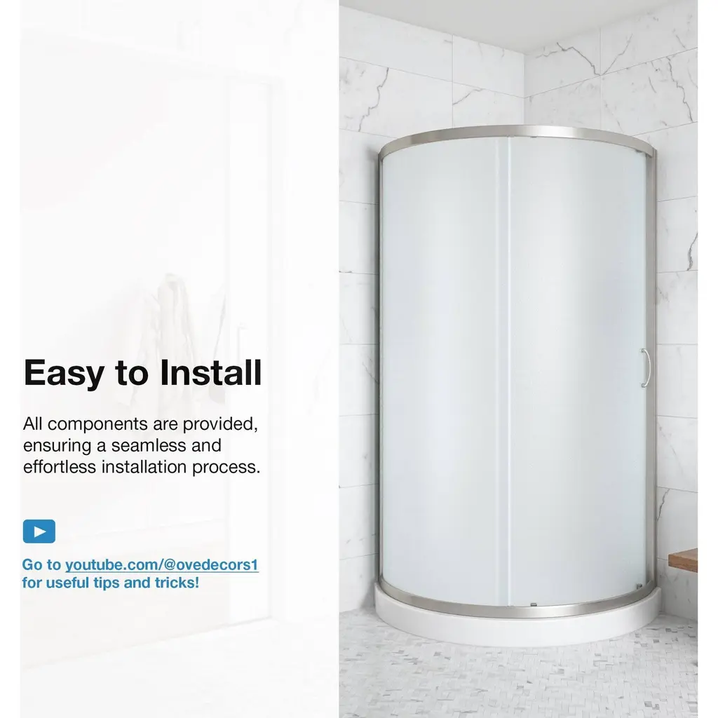 Complete the look of your bathroom with the Breeze 34-in sliding corner shower kit by OVE Decors. The round shape of the framed shower enclosure perfectly fits compact and small bathrooms. The all-in-one shower set includes an acrylic shower pan with corner drain and two frosted glass panels for that added touch of privacy. The sliding mechanism ensures an effortlessly smooth door opening and an ultra- tight seal to keep moisture in. In addition, the frosted glass door can be installed on either the left or right side, with built-in adjustability and easy to clean practicality.Ove Decors 15SKC-BREF34-AC Features:Ove Decors 15SKC-BREF34-AC Specifications: