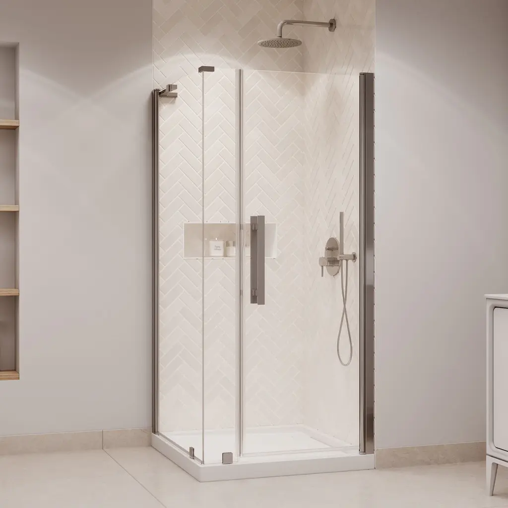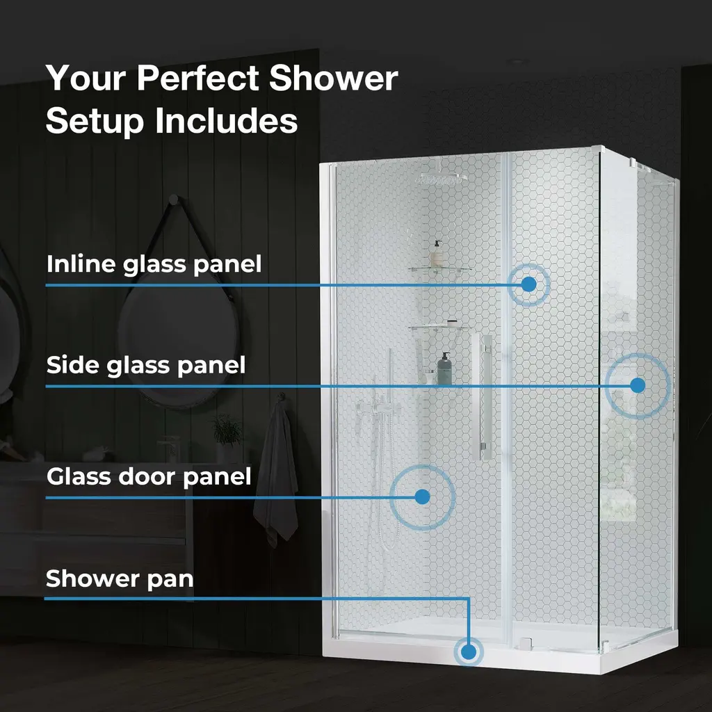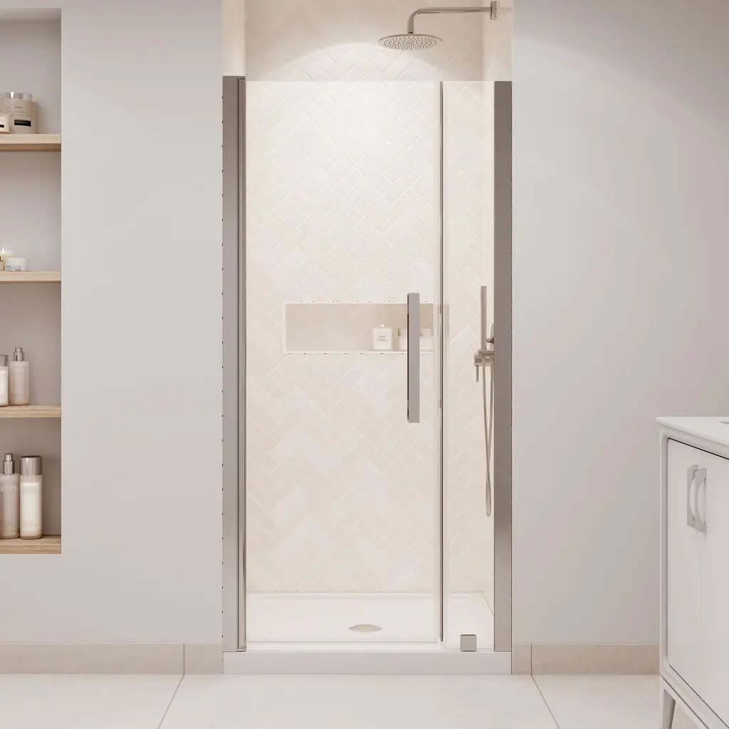 The Ove Decors Pasadena frameless pivot shower door kit offers the kind of sophisticated enclosure design that complements any and all bathroom styles. It has a full-length door-to-wall pivot door mechanism, with premium quality hardware, and includes a 25 in. wide door panel, a 6 in. wide inline panel and a 36 in. x 36 in. x 2 3/4 in. shower base, ideal for an alcove installation. All glass door panels are made from premium 8mm (5/16") thick certified tempered glass and feature high quality magnetic door strips and engineered hardware that ensure smooth opening and closing and no leaks. The reversible shower pan has a subtle covered side drain design, is made of premium fiberglass-reinforced acrylic and has a slip-minimizing textured surface and easy-to-clean construction.Ove Decors 15SKC-PASA36 Features:Ove Decors 15SKC-PASA36 Specifications: