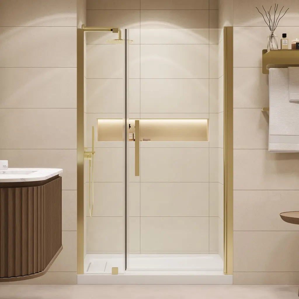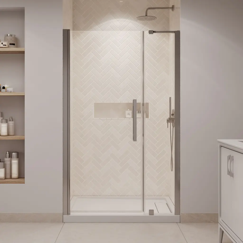 The Ove Decors Pasadena frameless pivot shower door kit offers the kind of sophisticated enclosure design that complements any and all bathroom styles. It has a full-length door-to-wall pivot door mechanism, with premium quality hardware, and includes a 29 in. wide door panel, a 14 in. wide inline panel and a 48 in. x 36 in. x 2 3/4 in. shower base, ideal for an alcove installation. All glass door panels are made from premium 8mm (5/16") thick certified tempered glass and feature high quality magnetic door strips and engineered hardware that ensure smooth opening and closing and no leaks. The reversible shower pan has a subtle covered side drain design, is made of premium fiberglass-reinforced acrylic and has a slip-minimizing textured surface and easy-to-clean construction.Ove Decors 15SKC-PASA48 Features:Ove Decors 15SKC-PASA48 Specifications: