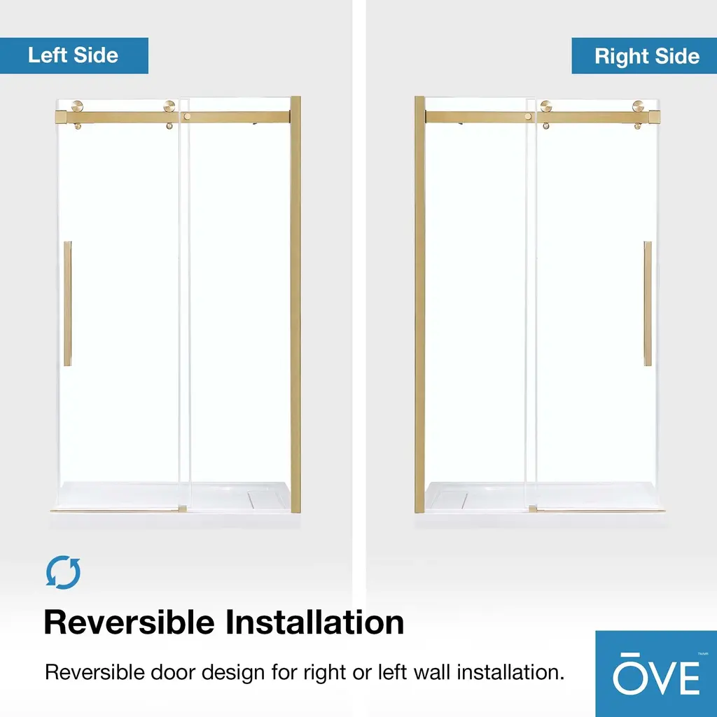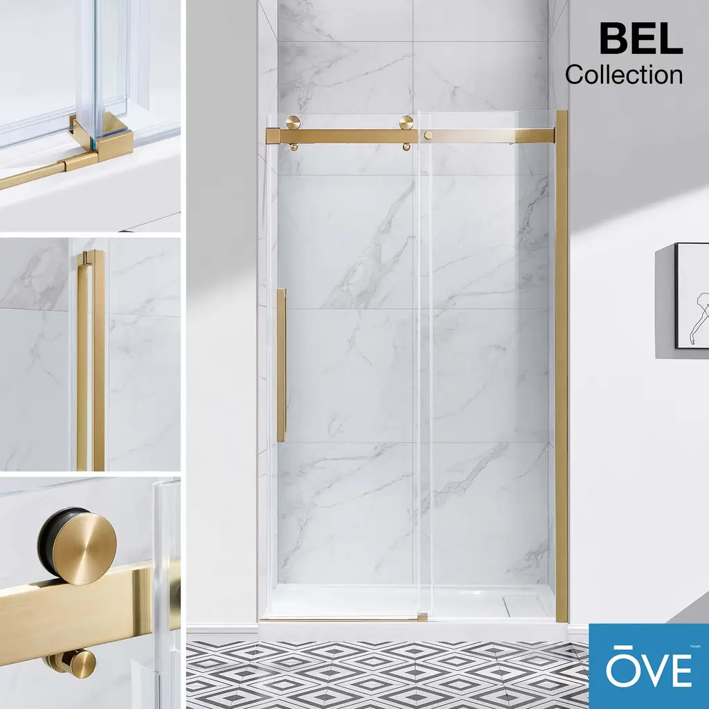 Ove Decors Bel Soft-Close Frameless Sliding Soft Close Shower Door - 48" - Gold