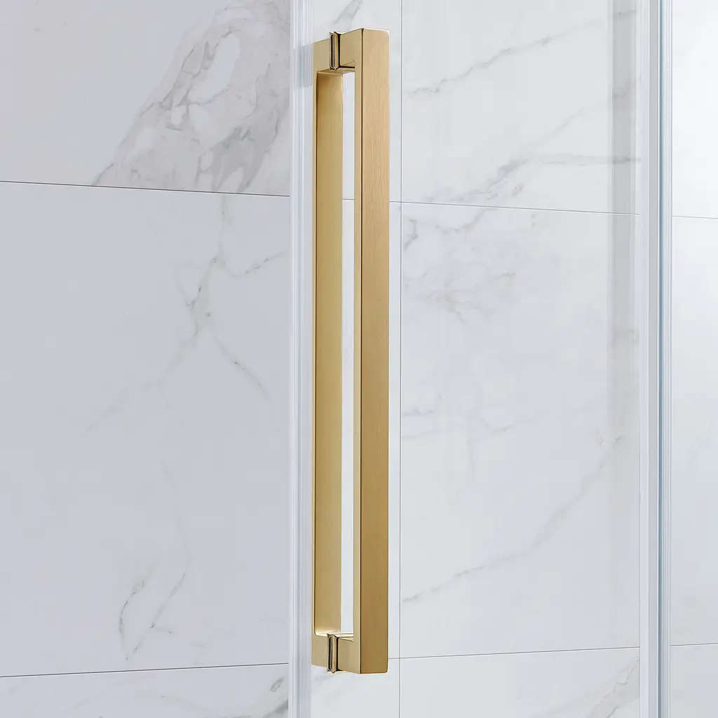 Bring an extra touch of luxury to your bathroom design with the Bel Soft-Close 48-in sliding alcove shower doors by OVE Decors. The rectangular shape of the frameless shower enclosure features oversized vertical bar handles, dramatic roller accents and clear high-end tempered glass panels, for a custom look and cool urban style. State of the art rolling mechanism hardware ensures an effortlessly smooth soft-close quiet door and watertight seal. The glass panels can be installed with right or left door opening, with built-in adjustability for out-of-plumb walls and easy to clean practicality. Enjoy Bel's beauty and solid built construction for years to come. Included matching hardware.