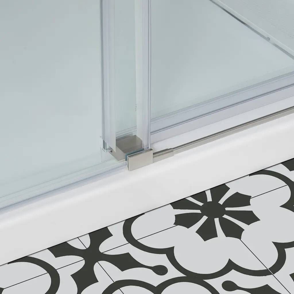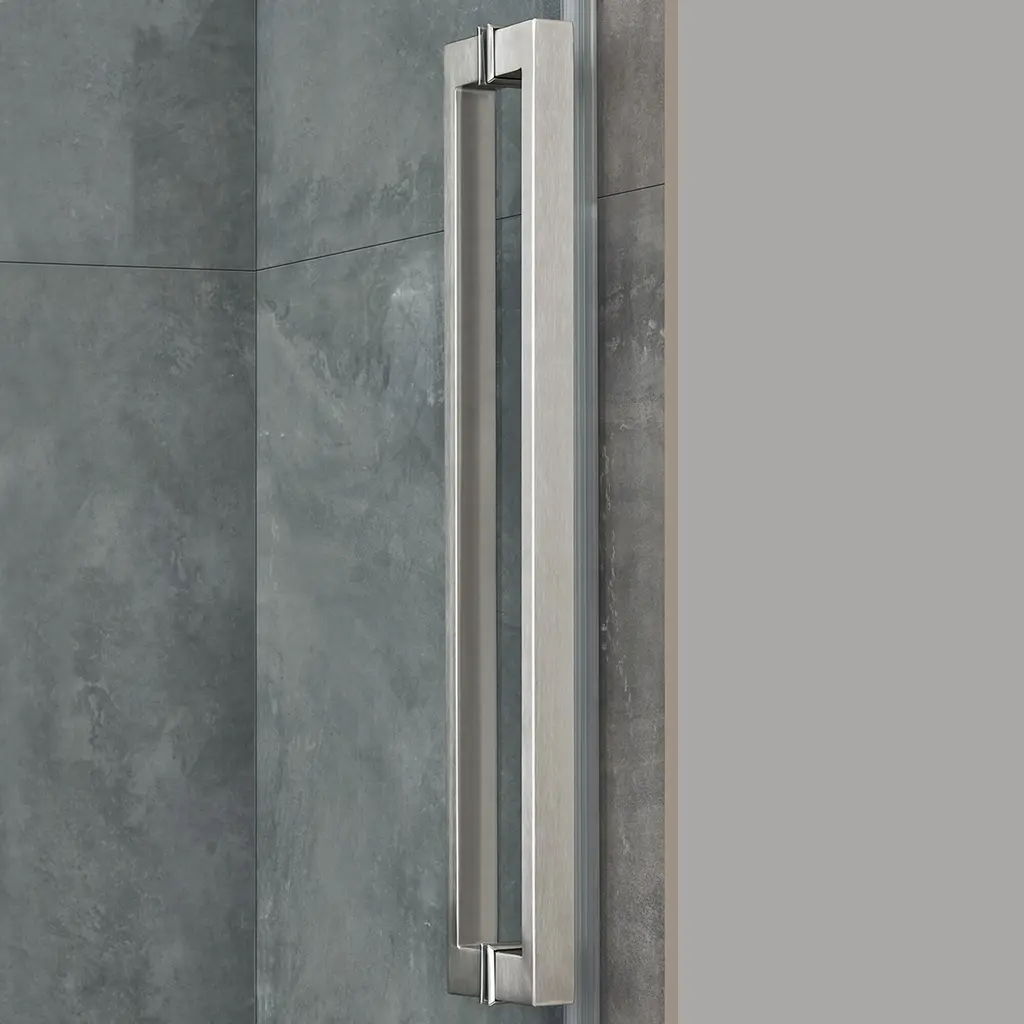 Bring an extra touch of luxury to your bathroom design with the Bel Soft-Close 48-in sliding alcove shower doors by OVE Decors. The rectangular shape of the frameless shower enclosure features oversized vertical bar handles, dramatic roller accents and clear high-end tempered glass panels, for a custom look and cool urban style. State of the art rolling mechanism hardware ensures an effortlessly smooth soft-close quiet door and watertight seal. The glass panels can be installed with right or left door opening, with built-in adjustability for out-of-plumb walls and easy to clean practicality. Enjoy Bel's beauty and solid built construction for years to come. Included matching hardware.