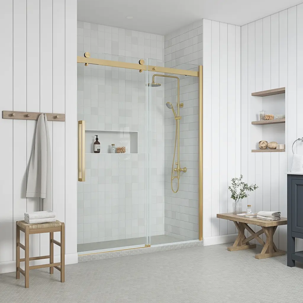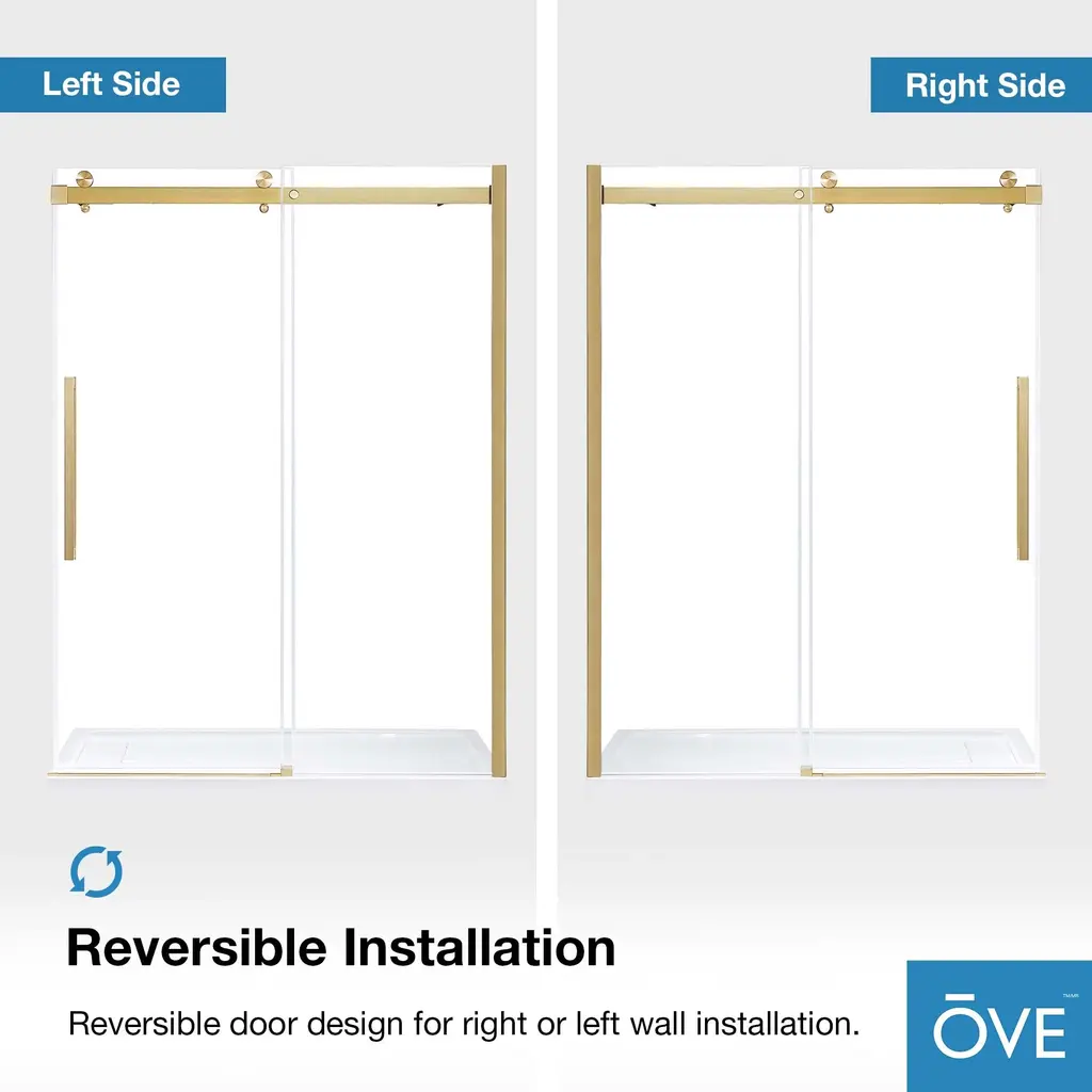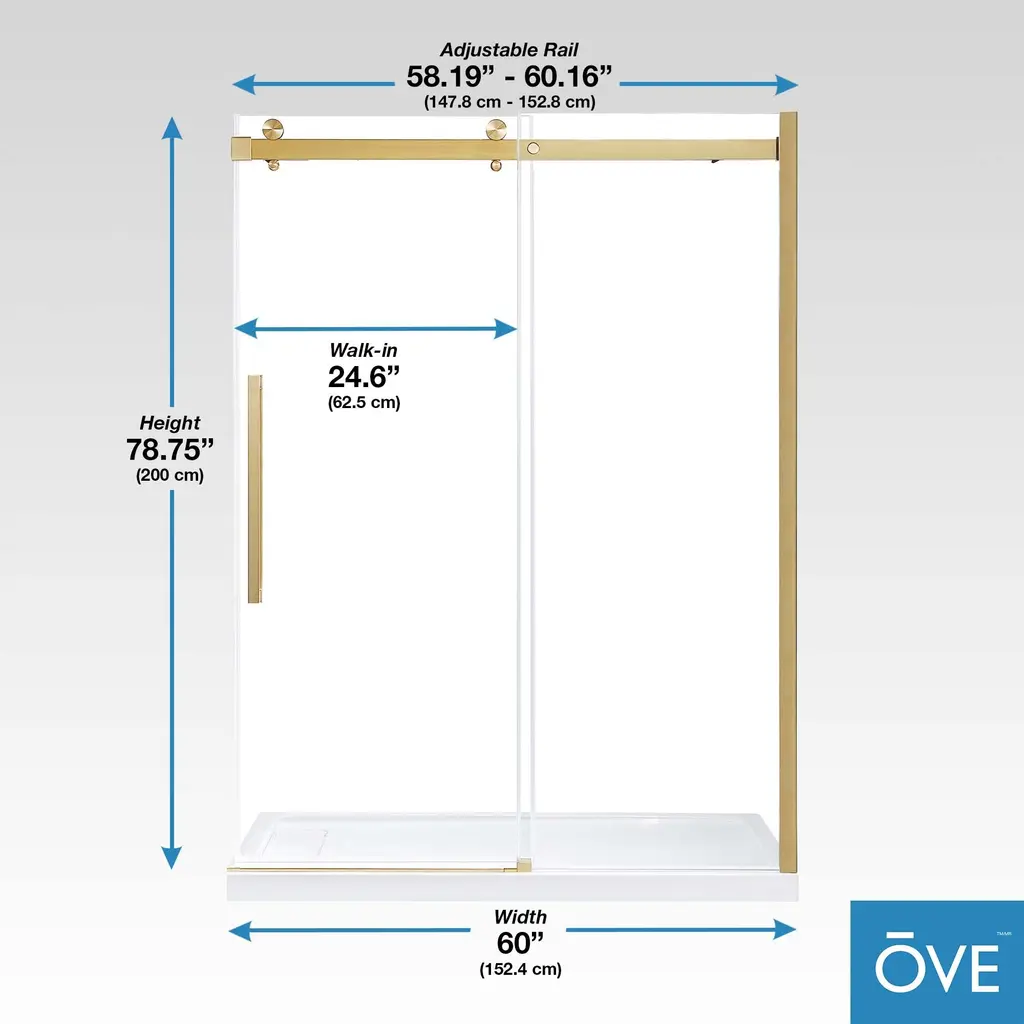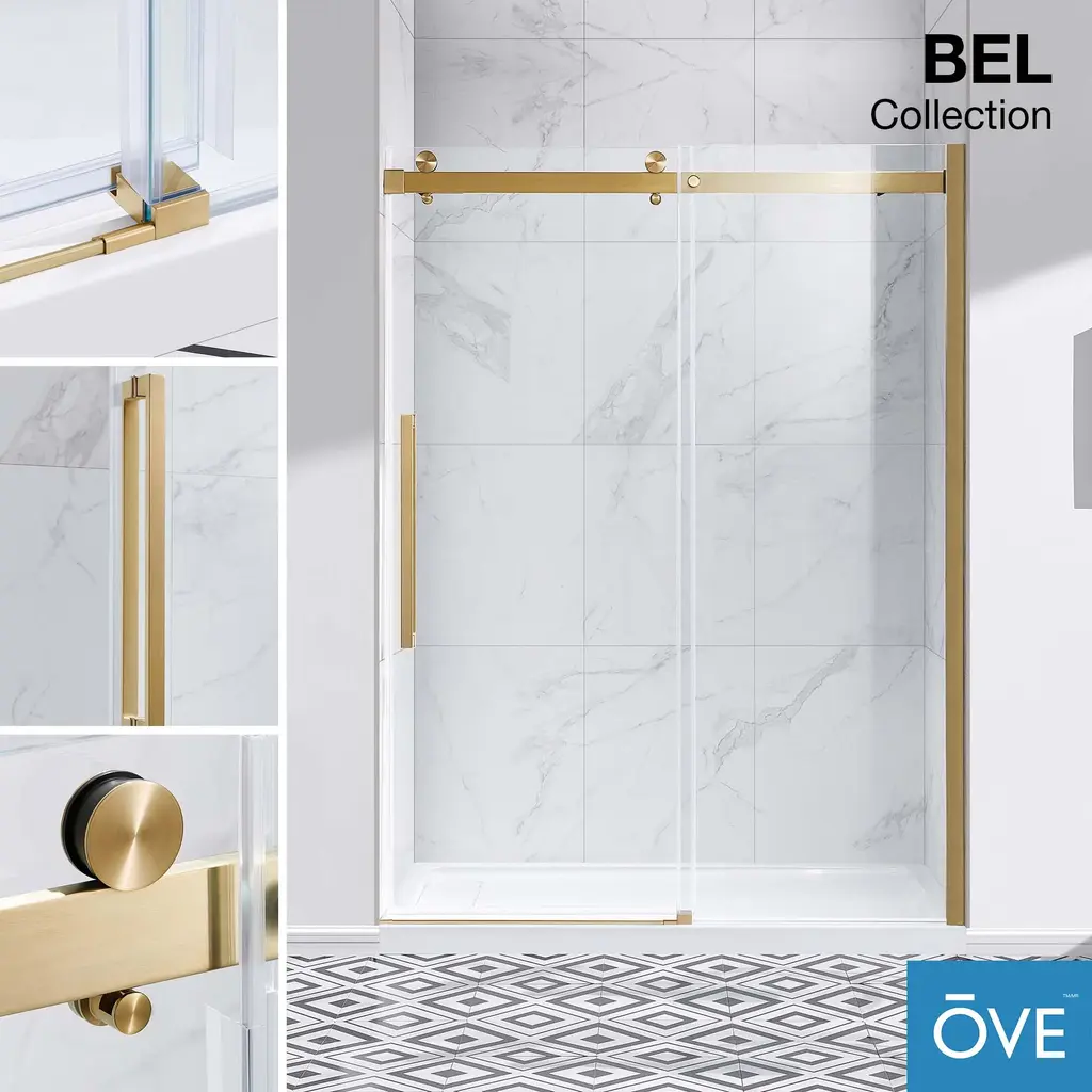 Ove Decors Bel Soft-Close Frameless Sliding Soft Close Shower Door - 60" - Gold