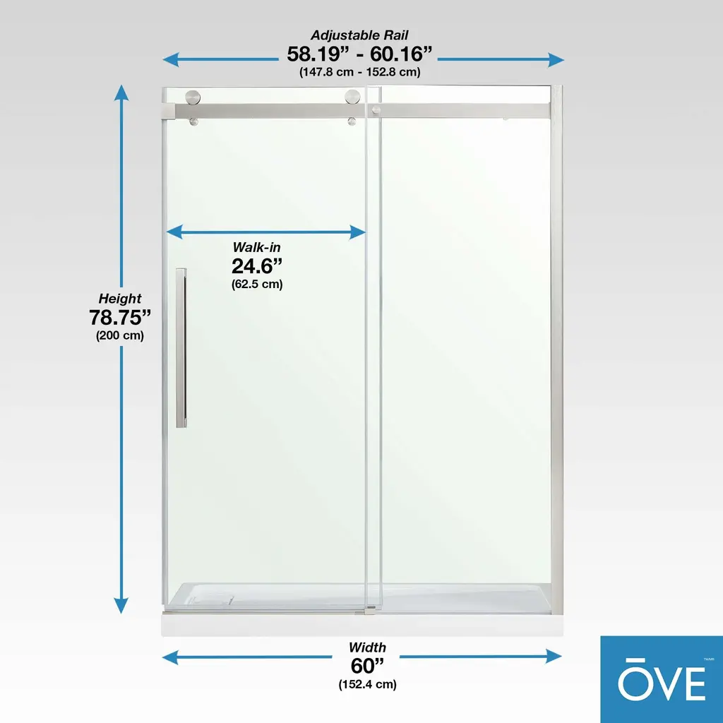 Ove Decors Bel Soft-Close Frameless Sliding Soft Close Shower Door - 60" - Satin Nickel