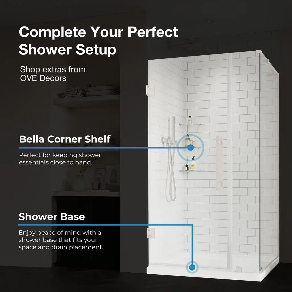 Ove Decors Panama Alcove Frameless Pivot Hinge Shower Door, 2025 - 31" - Black