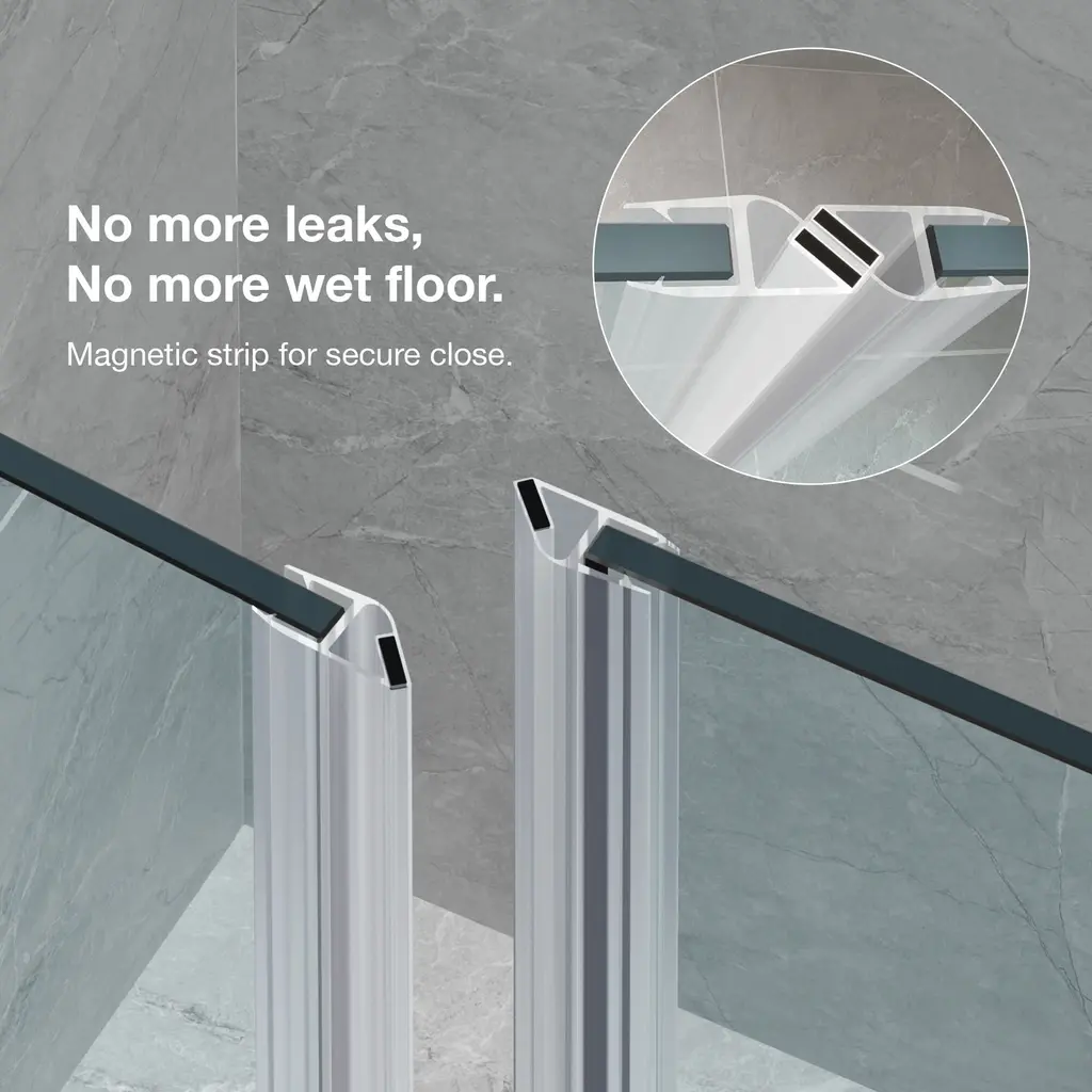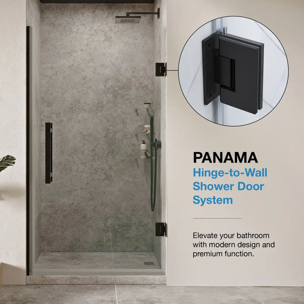 The Panama 30 11/16 in. frameless hinge shower door from OVE Decors has a modern, minimalist design that pairs high functionality with contemporary style. It comes with premium quality hardware, complete with a sleek black finish, and includes a 29 in. wide door panel, ideal for an alcove installation. The glass door panel is made from premium 8mm (5/16”) thick certified tempered glass, and features high quality magnetic door strips and engineered hardware that ensure smooth opening and closing and no leaks.