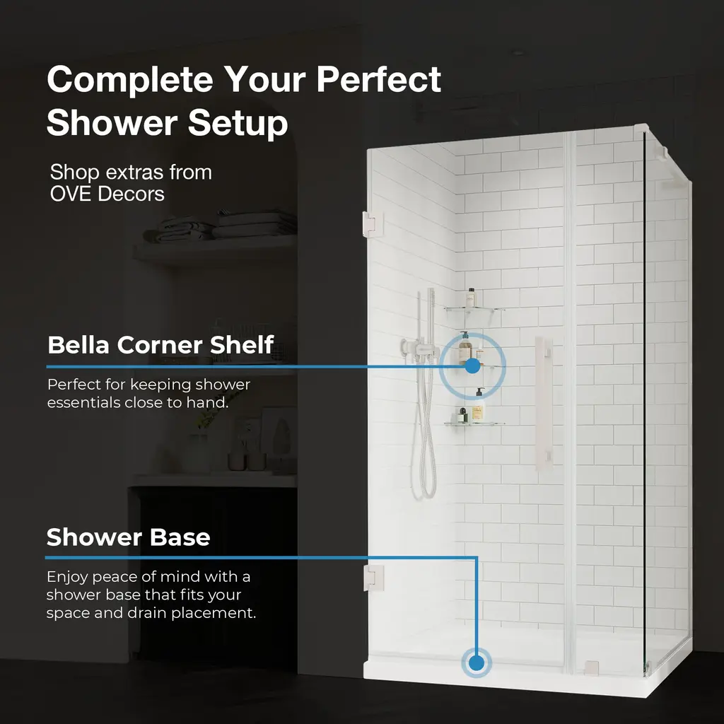 Ove Decors Panama Alcove Frameless Pivot Hinge Shower Door, 2025 - 35" - Satin Nickel