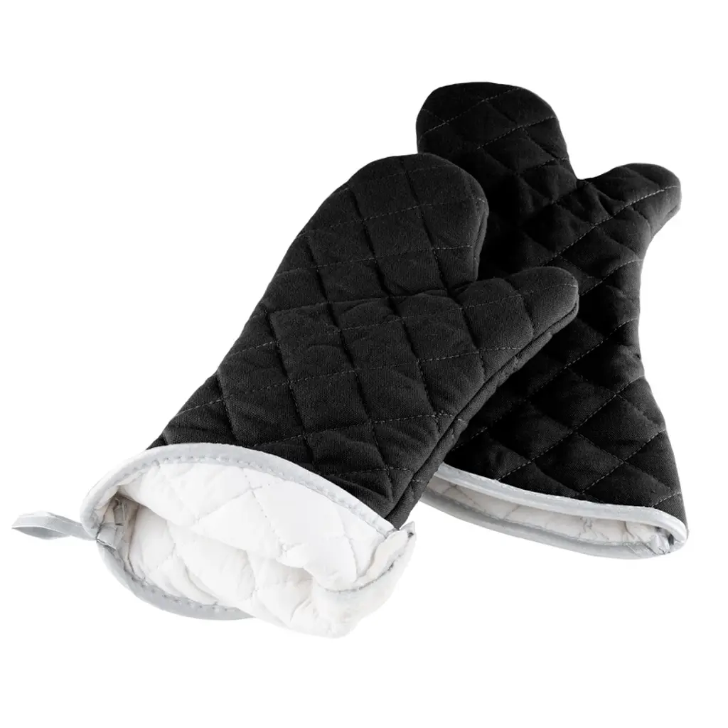 Oven Mitts, Set Of 2 Oversized Quilted Mittens, Flame And Heat Resistant By Lavish Home (Black)