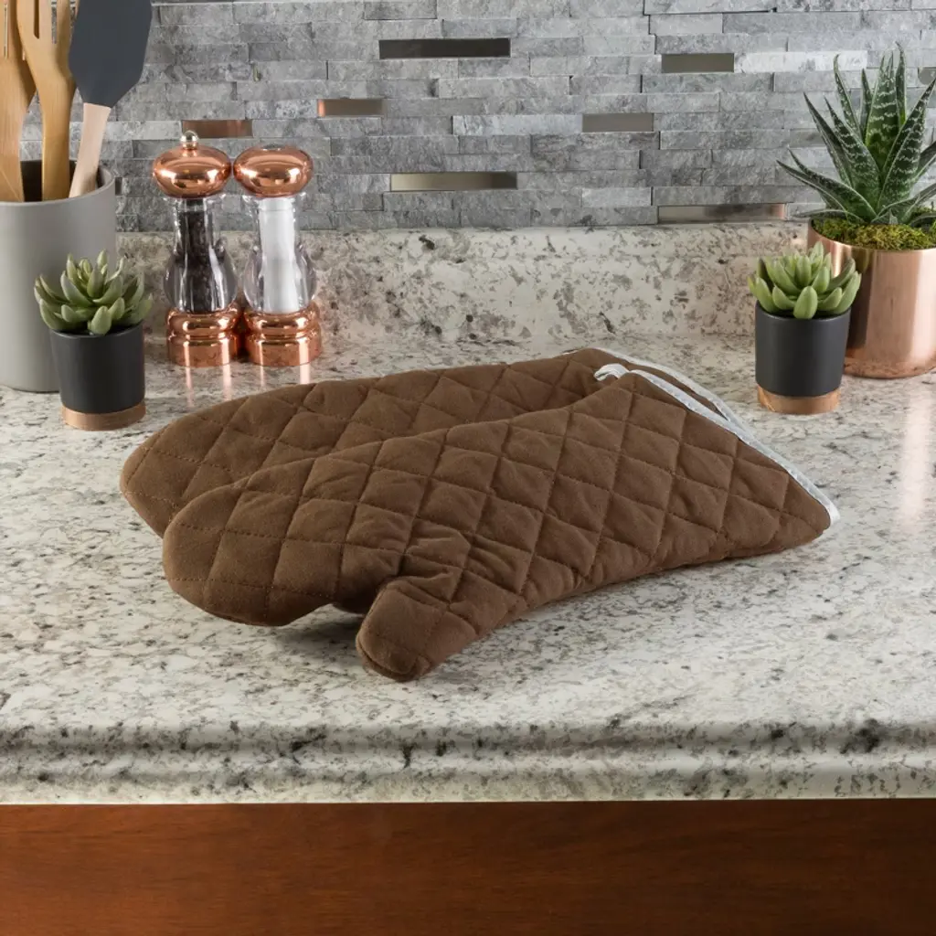 Oven Mitts, Set Of 2 Oversized Quilted Mittens, Flame And Heat Resistant By Lavish Home (Chocolate)