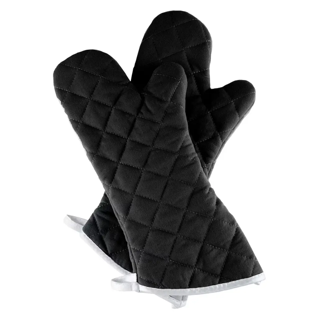 The Lavish Home set of 2 long quilted flame and heat protection over mitts offer added protection to the forearm from the oven door and sides. The quilted, and reversible mitts help against burns from inadvertently touching a hot surface. These mitts are a crucial tool in the kitchen or for use outdoors grilling.