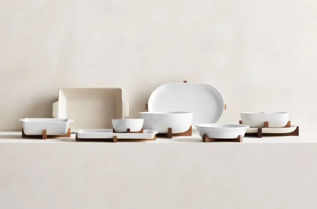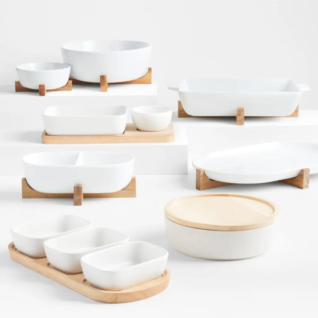 Oven-To-Table Oval Serving Platter With Wood Stand