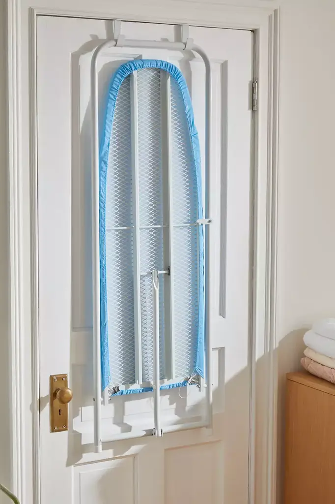 Maximize your space and efficiency with this ironing board featuring an over-the-door bracket that folds open when in use. Fits over a standard door and folds up when you’re all done.