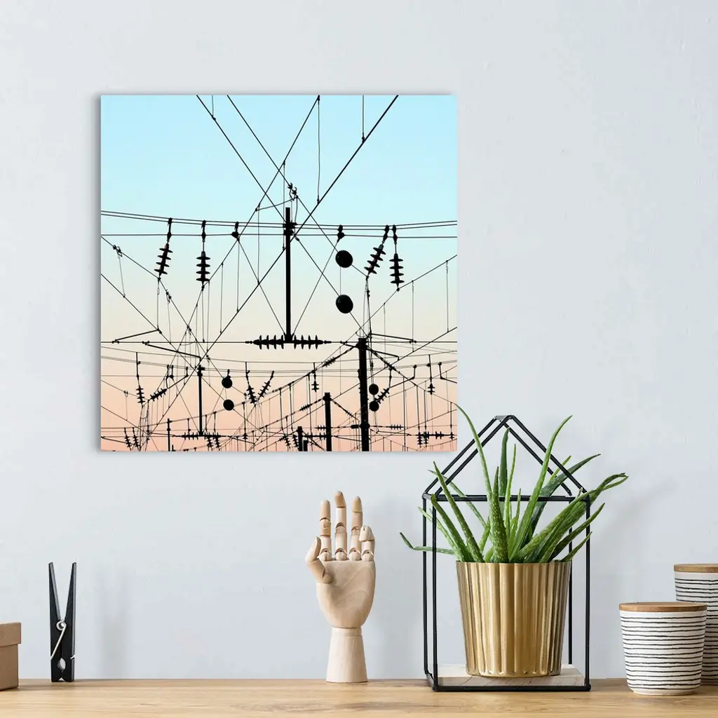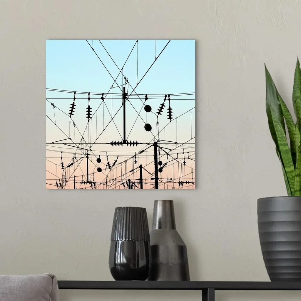Overhead lines station, train electricity wires with evening sky. wall art for home and office decor. Discover canvas art prints, photos, mural, big canvas art and framed wall art in GreatBigCanvas.com's varied collections.