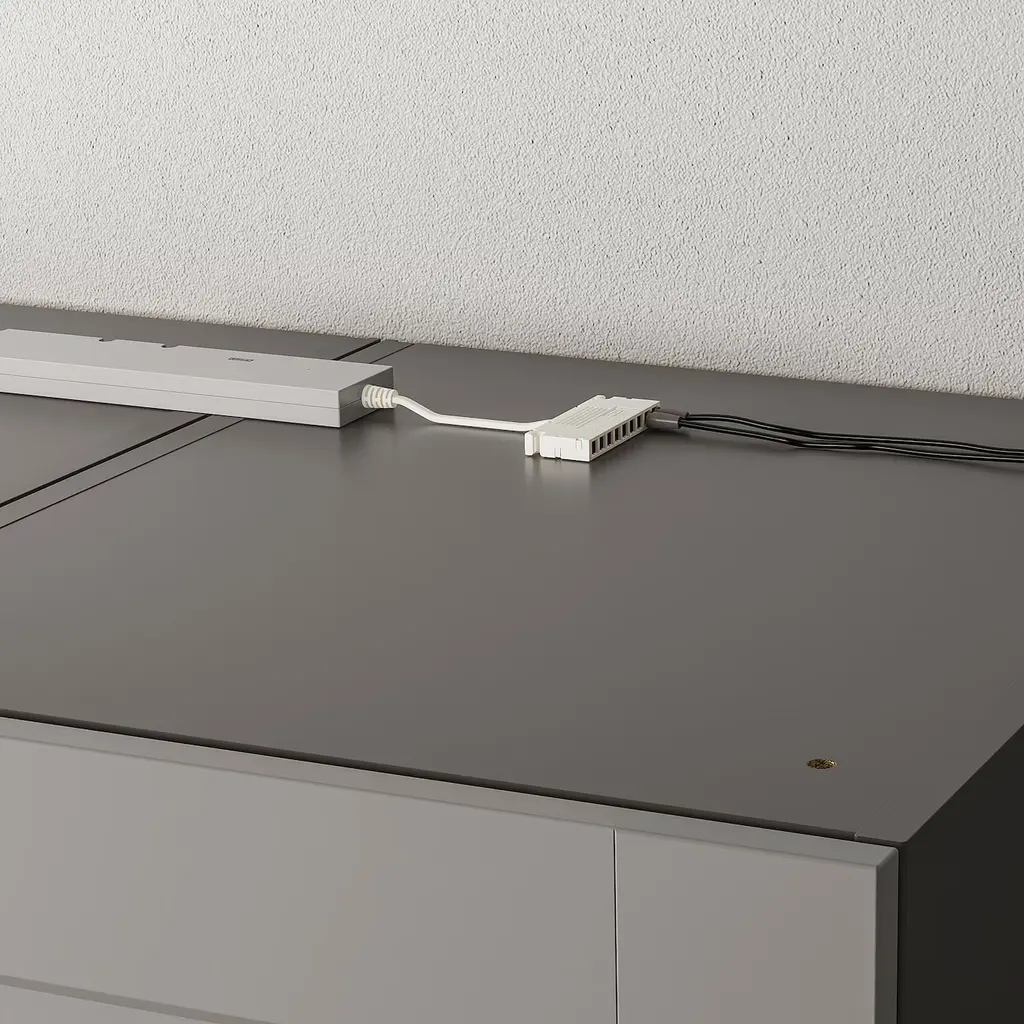 ÖVERSIDAN LED wardrobe lighting strp w sensor - dimmable dark gray 18 ". The light switches on and off automatically when you open or close the drawer so no energy is wasted. The LED light strip is available in 3 colors that match PAX wardrobe frames perfectly. Fits PAX wardrobe frames.