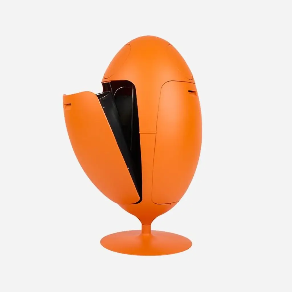 For dreamers of luxury and sophistication, who design a better and more beautiful world.The recycling garbage can becomes a designer dustbin, Ovetto Galà orange matte satin lends a touch of style and elegance to any home, office, or boardroom.Ovetto is space-saving; its curves are designed to place it comfortably in a corner, making it look better.Ovetto is designed to withstand. It has an average life span of 10 years.Its elegance, practicality, and futuristic form suggest attention to detail and current trends, positioning a home or business at the forefront of formulating new fashions.Convenient, easy to use, spacious, fun, and above all aesthetically pleasing, it lightens the visual impact of your decor. Ovetto Gala is the recycling container you will never want to hide, buy it now and stand out for your unique style.