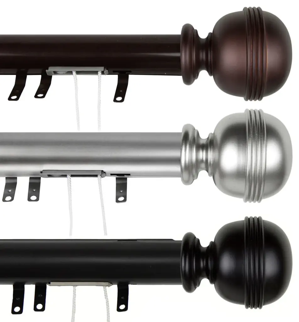 Includes: Decorative Traverse rod, mounting brackets, and finialsProjection: 3.25"Finials measure: 3.75" x 3.25" x 3.25"