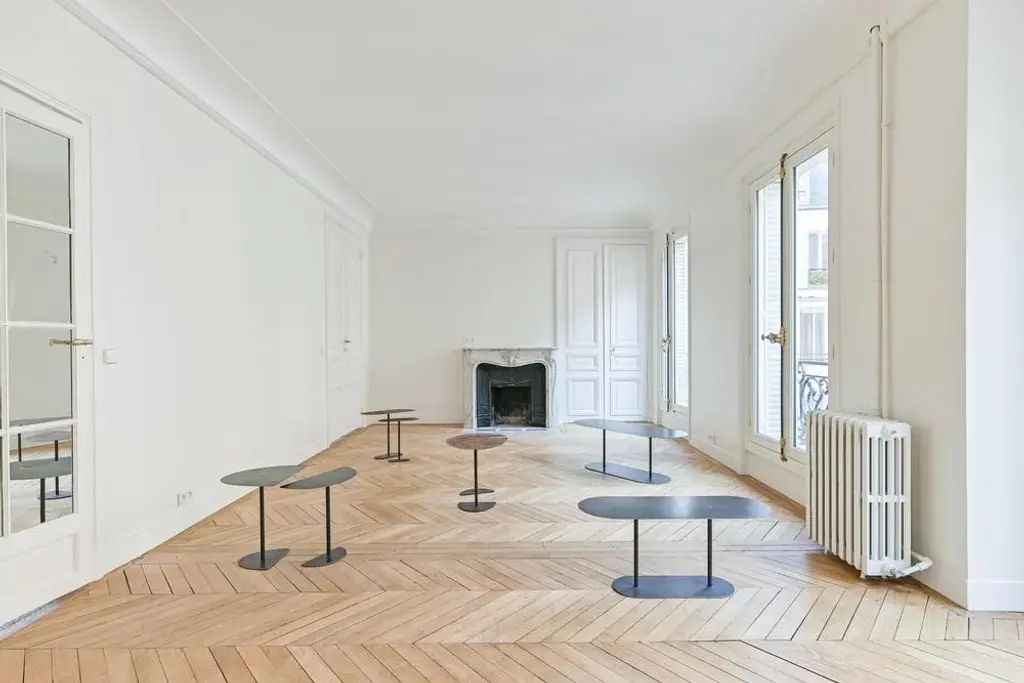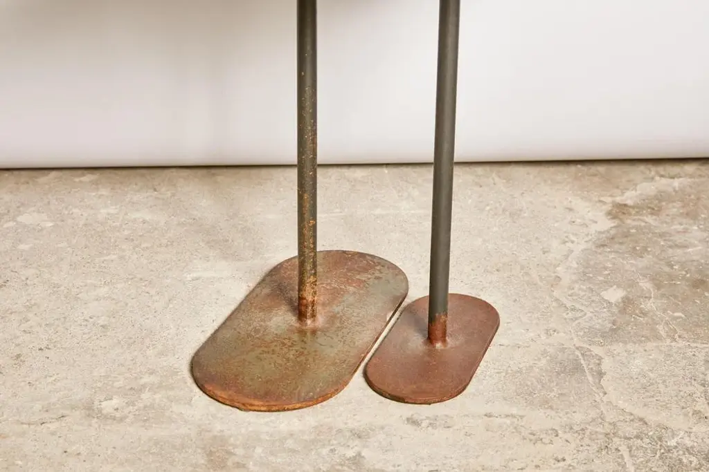 Pair of oxidized ellipses table signed by pia chevalier oxidized steel. Dimensions: large 120 x 40 cm h. 40 cm small 90 x 30 cm h. 35 cm exists also in smaller version: large: 60 x 27 cm h. 45 cm small: 40 x 18 cm h. 40 cm pia chevalier is a french contemporary designer. Independent designer, trained in design and crafts and more specifically on the sets and surface treatments, at boulle school, pia chevalier today has her own workshop in the goldsmith's shop, the former premises of christofle. The designer gives way to total spontaneity in its creative process and the composition of her pieces. Her love for raw materials incites her to constantly transform them for the purpose of unique sculptural pieces creation. Focused on the object of daily life, it gives it a status of sculpture capable of arousing emotion and create an emotional bond. Her obsession is to give solemnity to these objects, to make them endearing her works were sold to prestigious collections and institutions. This piece is attributed to the mentioned designer/maker. It has no attribution mark and no official proof of authenticity, however it is well documented in design history. I take full responsibility for any authenticity issues arising from misattribution