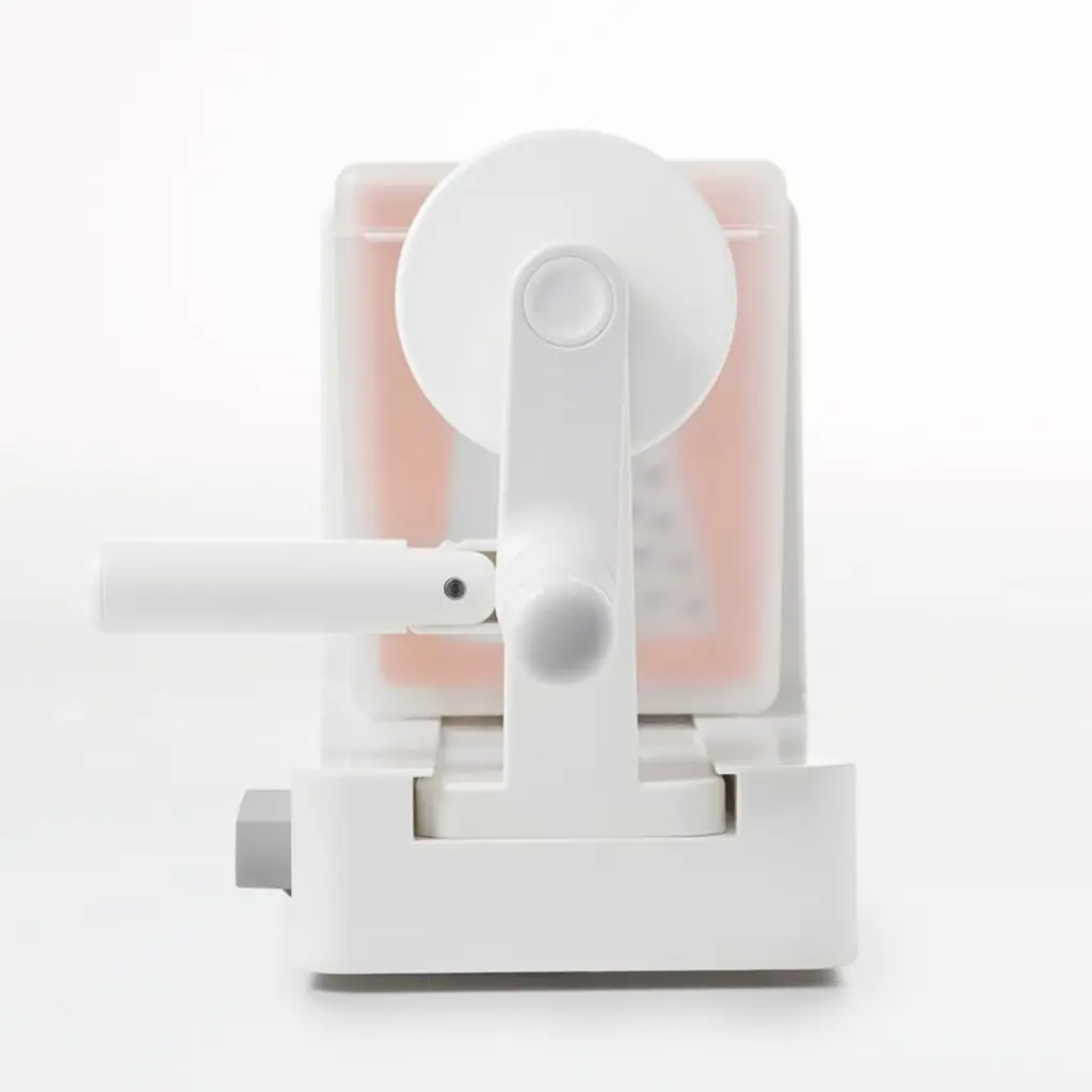 This compact spiralizer transforms almost any vegetable or fruit into fun-to-eat noodles that will help you pack more produce into your daily meals. Use the suction cup to hold the ingenious white gadget securely in place on your countertop, choose your noodle shaperibbons, fettuccine, or spaghettiand start spiralizing by simply spinning the handle. Create pasta primavera with zucchini noodles, sweet potato sandwich buns and butternut squash mac and cheese, or make a favorite salad a little more special with intriguing shapes and textures. For compact storage, the handle folds up and the blades fit securely in the included box.OXO has been creating practical and accessible kitchen tools for over 25 years.View all OXO products