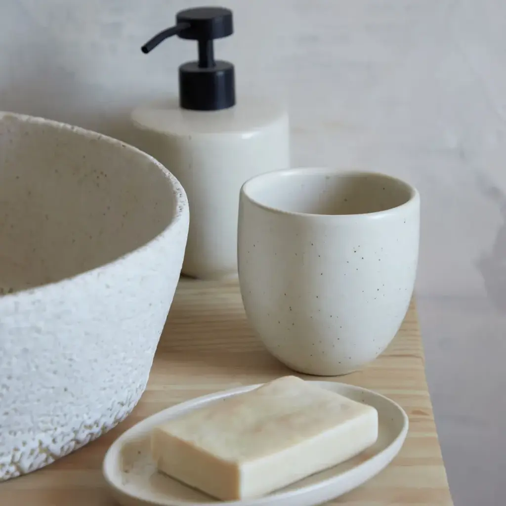 Set a soothing atmosphere in the bathroom with our practical and trendy accessory sets. Made of fine stoneware in Portugal, our impeccably designed bath accessories are crafted to add enduring style to the bathroom.