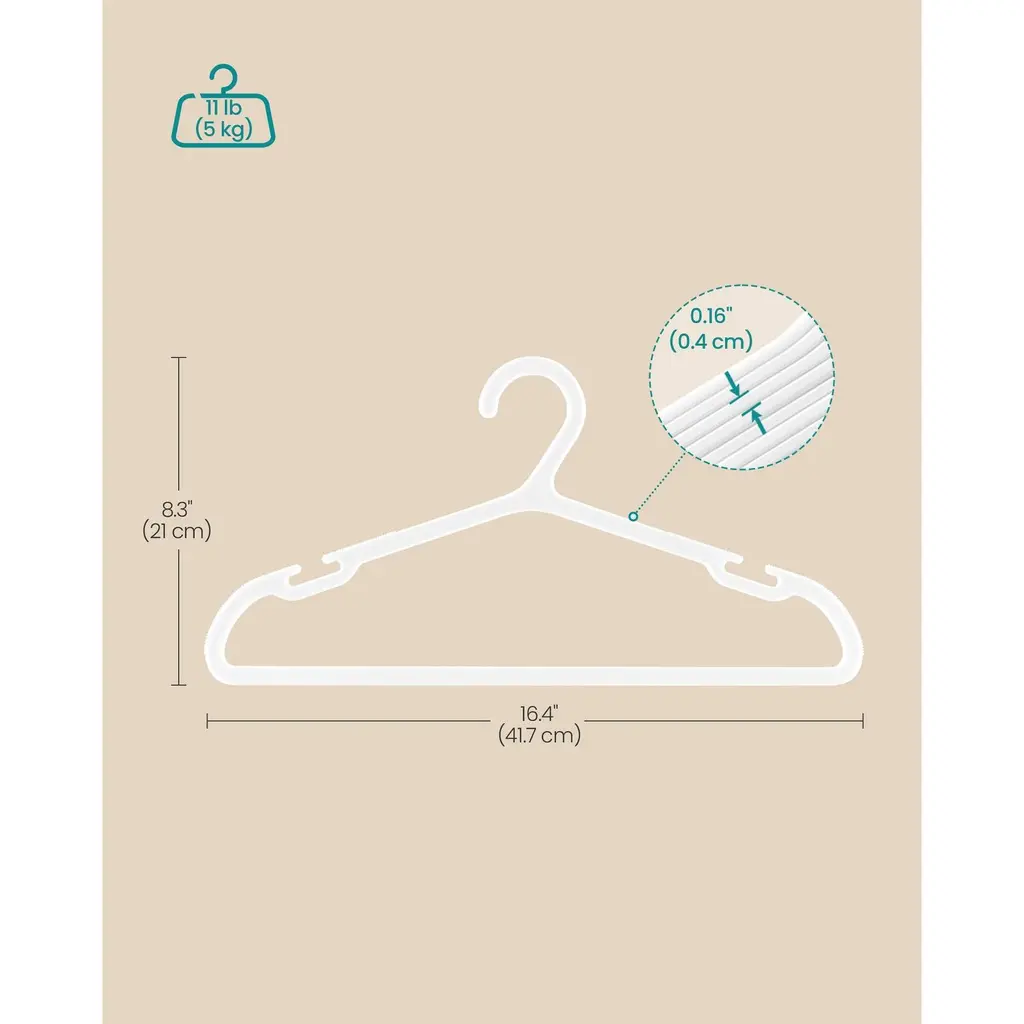 Pack Of 50 Plastic Hangers With Wide Shoulder Notches - 16.4"l X 0.16”w X 8.3"h - Cloud-White