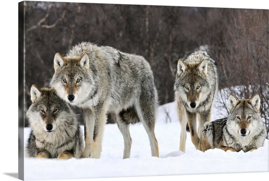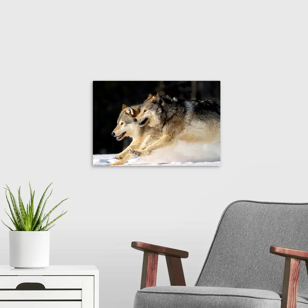 Pack Of Grey Wolves Running Through Deep Snow wall art for home and office decor. Discover canvas art prints, photos, mural, big canvas art and framed wall art in GreatBigCanvas.com's varied collections.