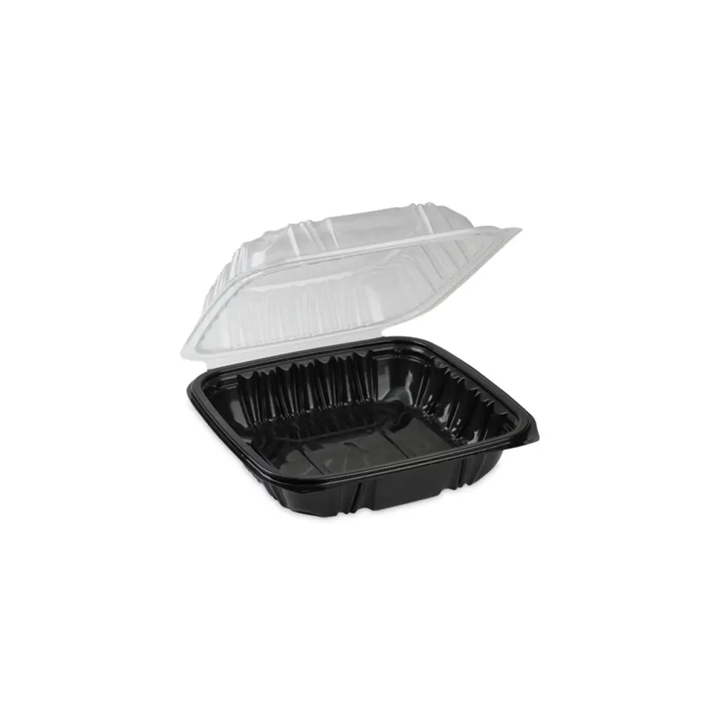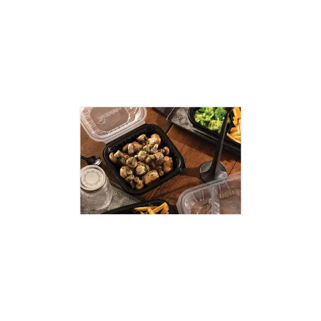 Pactiv Evergreen Earthchoice Vented Dual Color Microwavable Hinged Lid Container, 1-compartment, 28oz, 7.5x7.5x3, Black/clear, Plastic, 150/ct