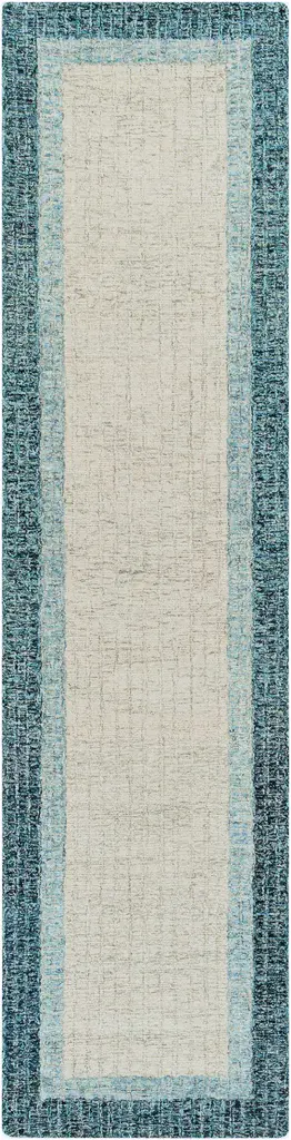 Collection: Padada Colors: Cream, Navy, Teal, Pale Blue, Beige Construction: Hand Tufted Material: 100% Wool Pile: Low Pile Pile Height: 0.2" Styles: Contemporary Backing: Canvas Made In: India Thickness: 0.5" Price Range: $$$$$ (Affordable)