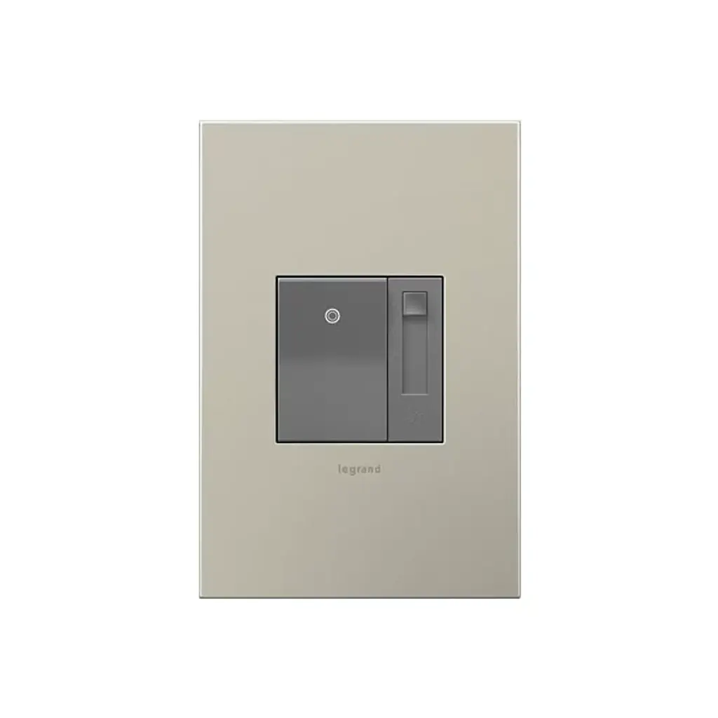 The Legrand Adorne Paddle Fan Speed Control features both an on/off switch and slide control with 4 speed settings. Also includes a quiet control option (de-hummer). A single control will operate one fan from one location; combine it with another Adorne switch to control one fan from two locations.