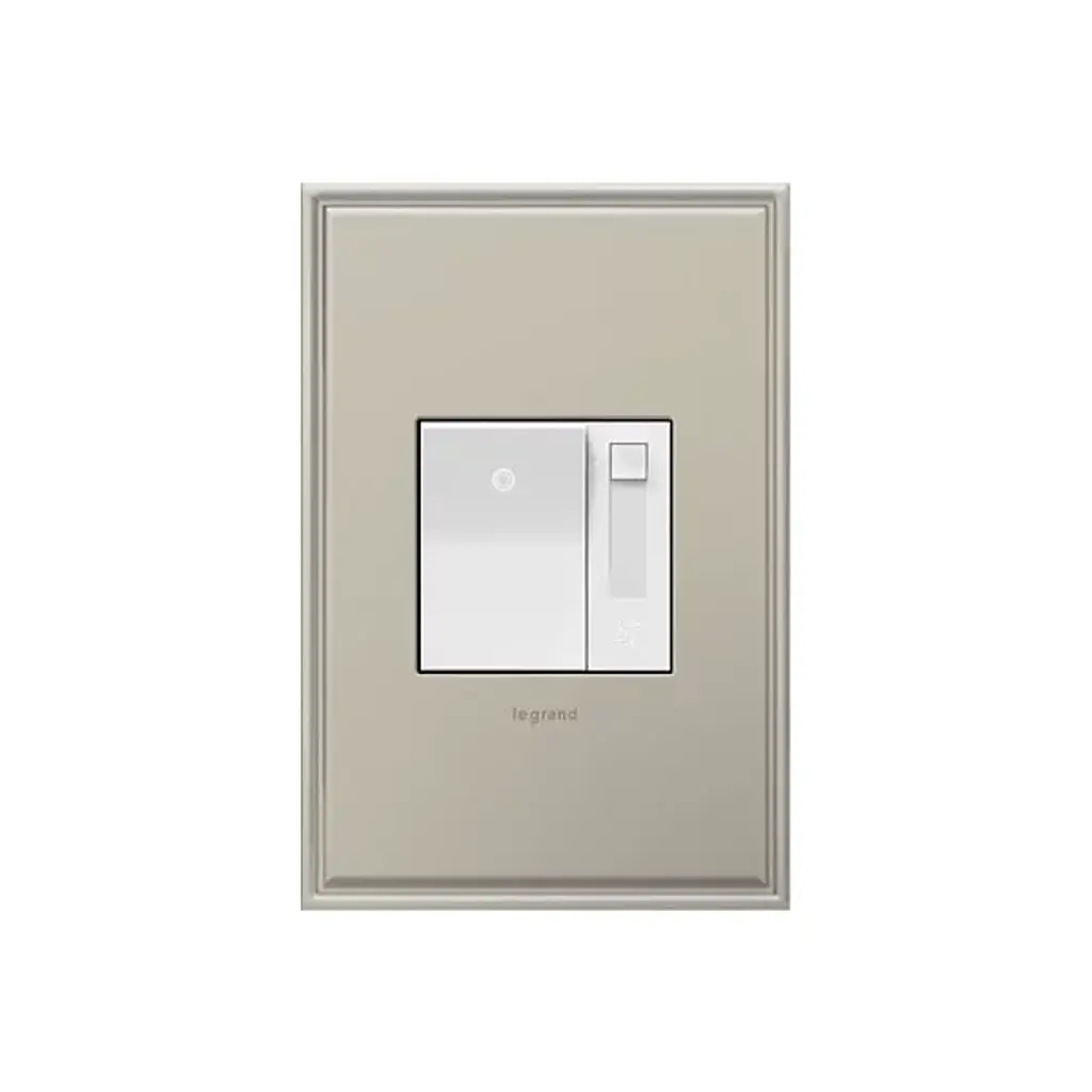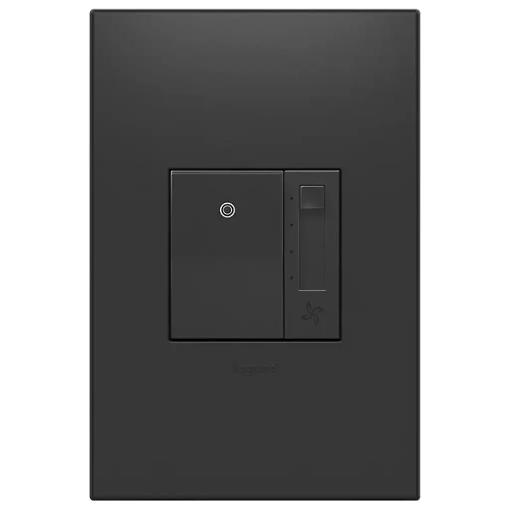 The Legrand Adorne Paddle Fan Speed Control features both an on/off switch and slide control with 4 speed settings. Also includes a quiet control option (de-hummer). A single control will operate one fan from one location; combine it with another Adorne switch to control one fan from two locations.